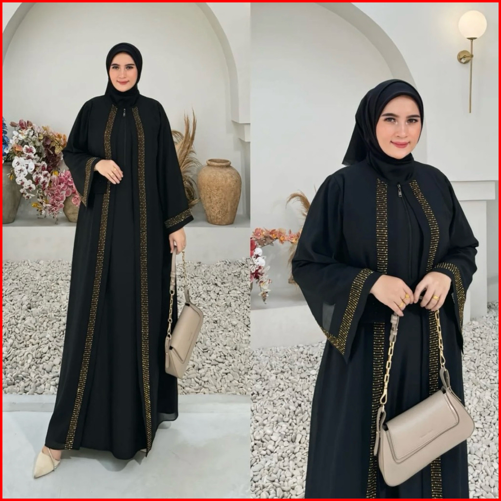 Gamis Abaya Turkey Bordir Zoda Full Hitam 1199 Gamis Pesta Zoda Hitam Abaya Formal