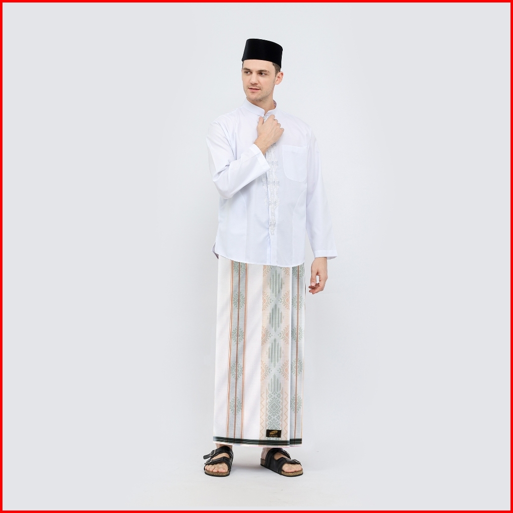 Sarung Atlas Idaman 590 Jacquard Classic Motif A5-jpa Putih Cream