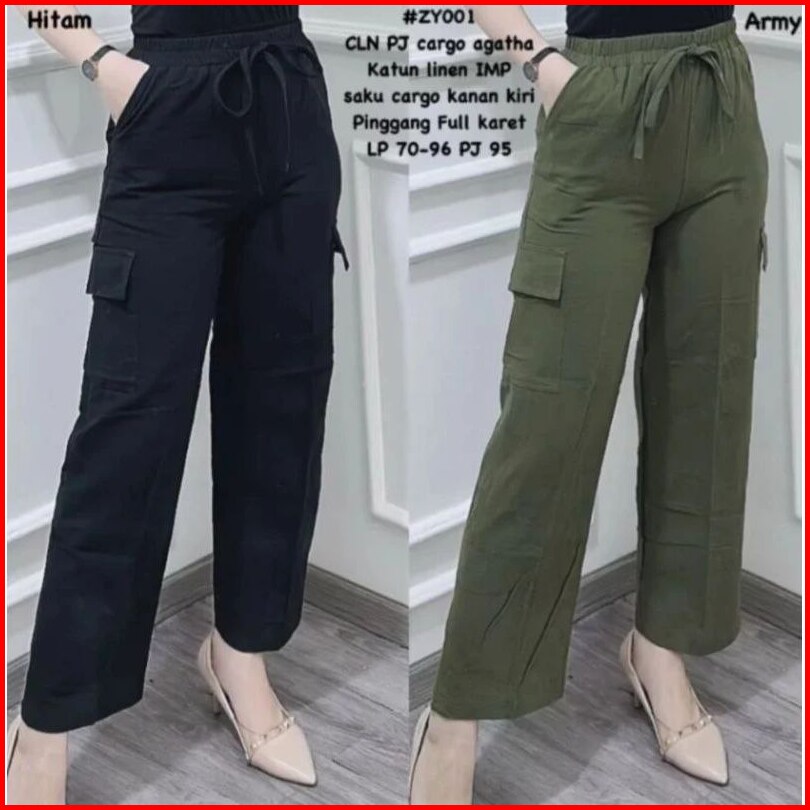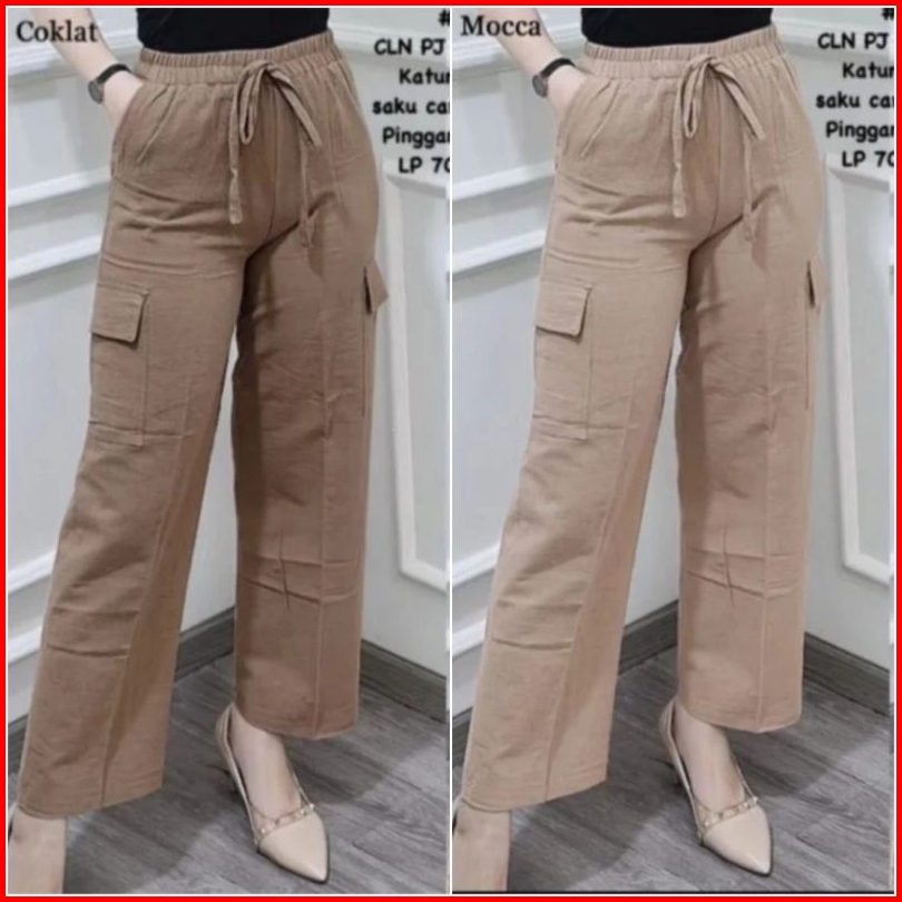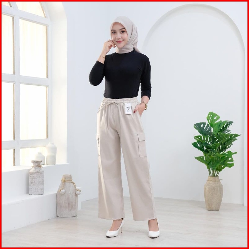 Zilka - Celana Kulot Cargo Wanita Linen Crinkle Korean Style Terbaru