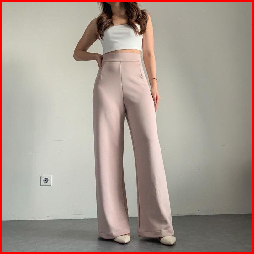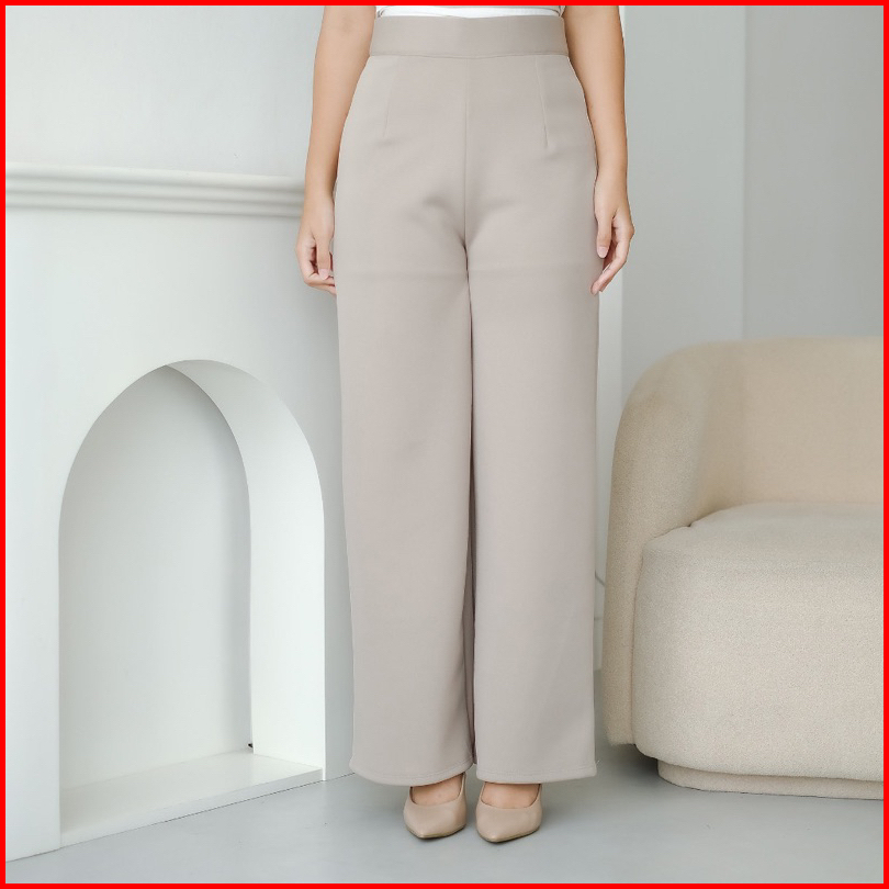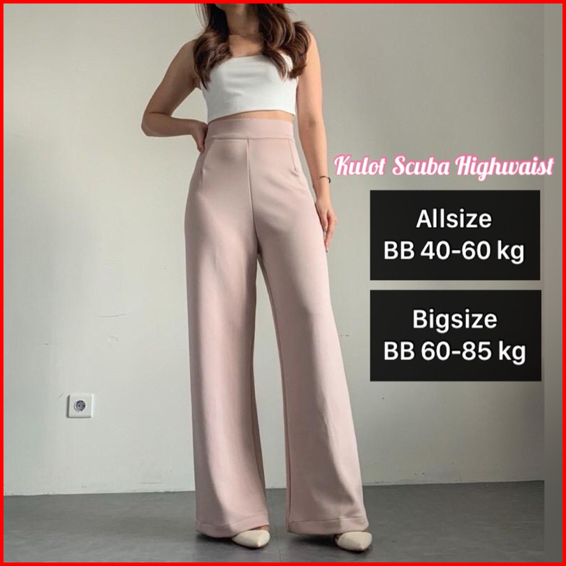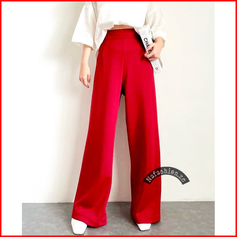 Celana Kulot Highwaist Wanita Celana Cullote Scuba Panjang Premium - Felicia High Waist Long Kulot - Celana Merah Cabe B