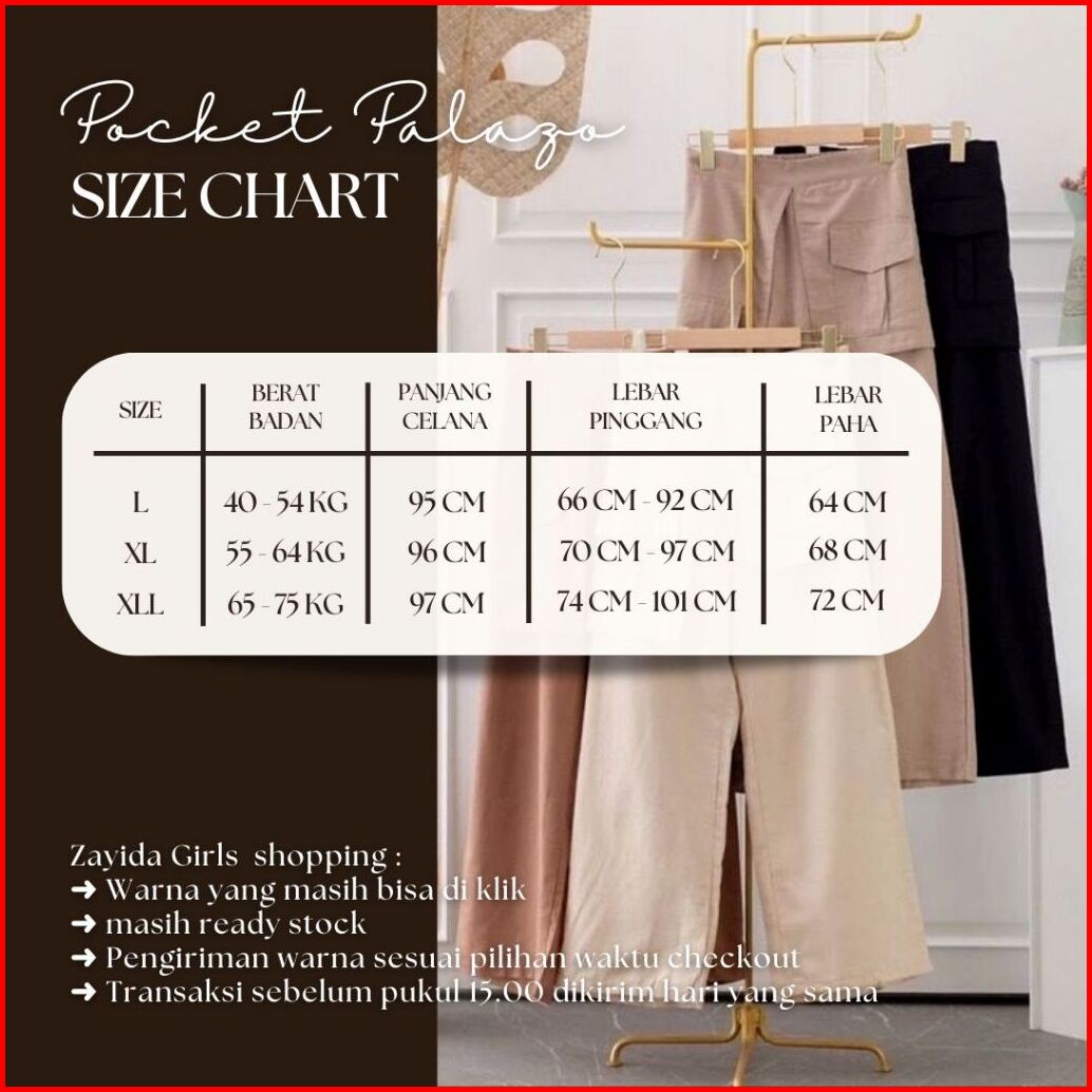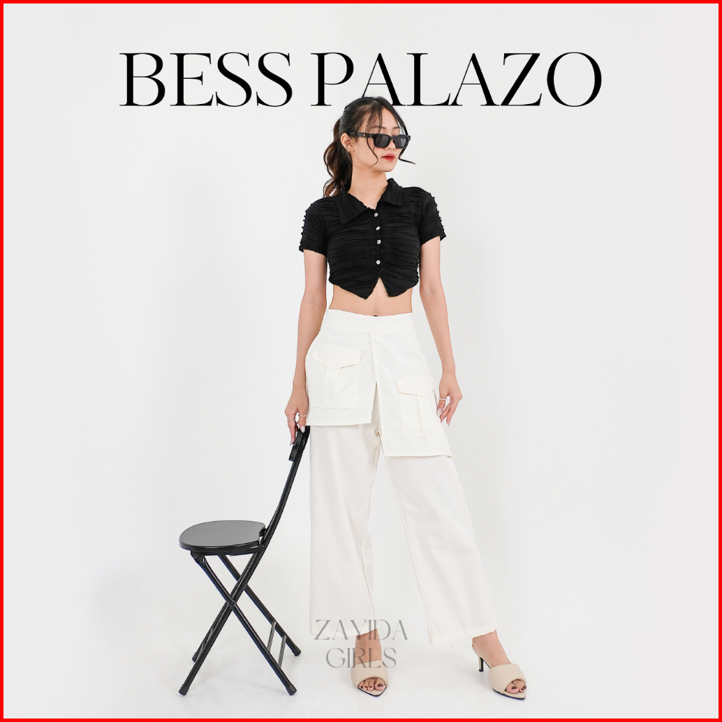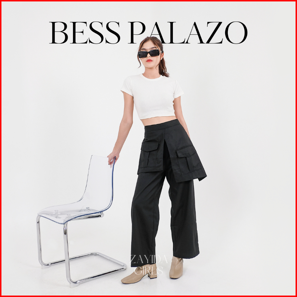 Zayida - Celana Bess Palazo Pocket Kulot Pants Highwaist Celana Wanita Kekinian