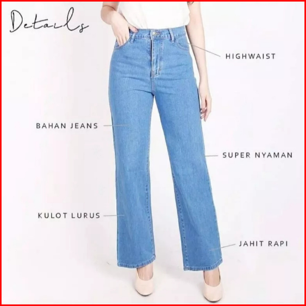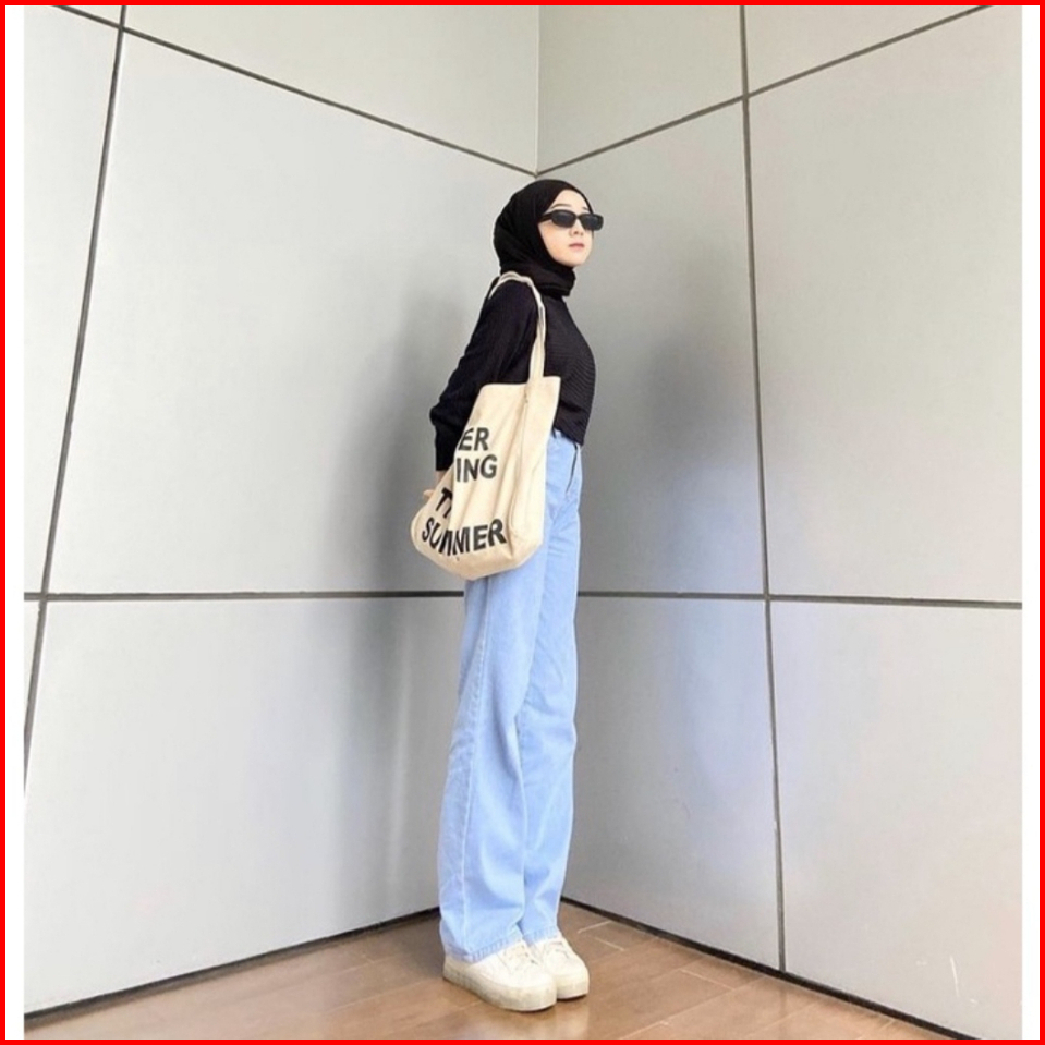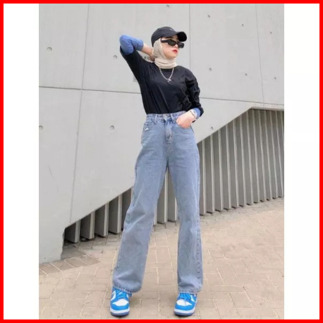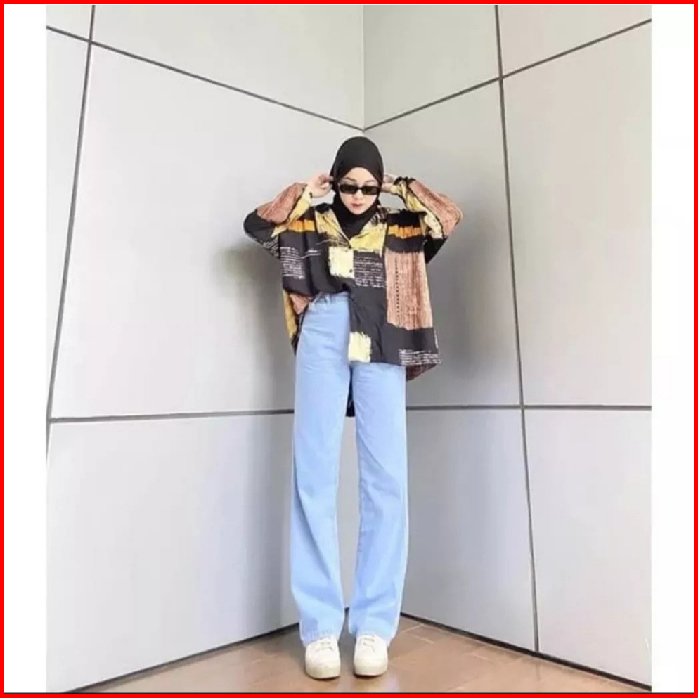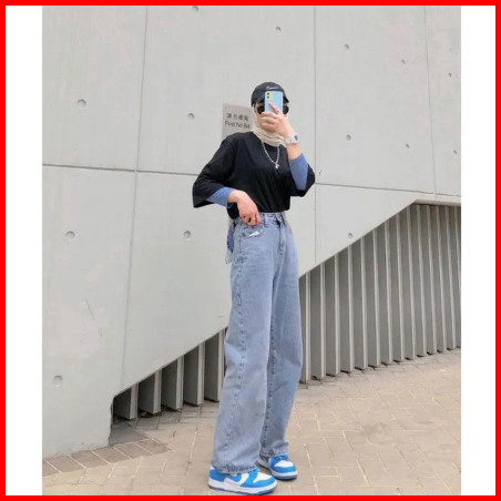 Celana Highwaist Korea Style Kulot Jeans Loose Acid Panjang 100