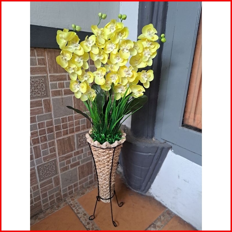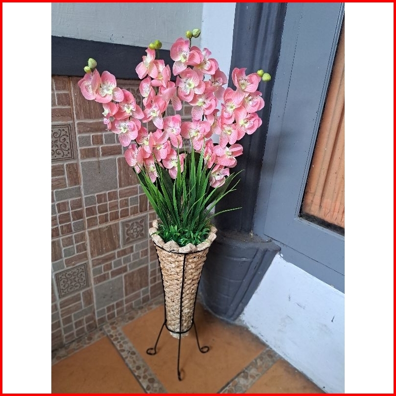 Bunga Anggrek Artificial Pot Pelepah Anyam Standing Home Dekorasi Dekorasi Rumah Bunga Pojok