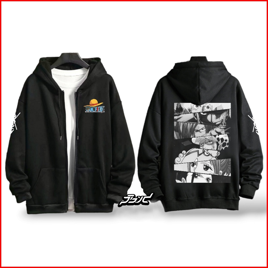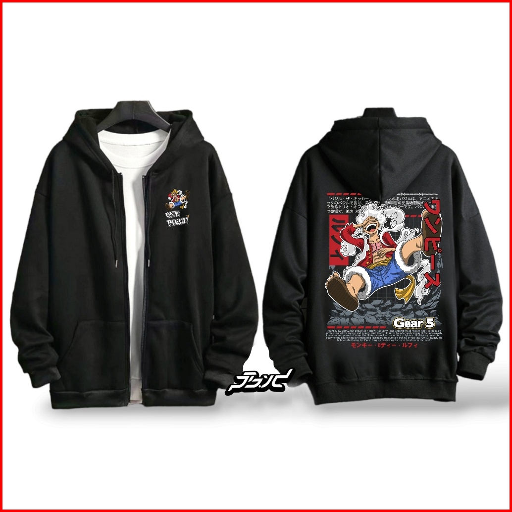 Sweater Pria Jaket Hoodie Zipper Anime One Piece Monkey D Luffy Gear 5 Hitam Premium Distro Unisex
