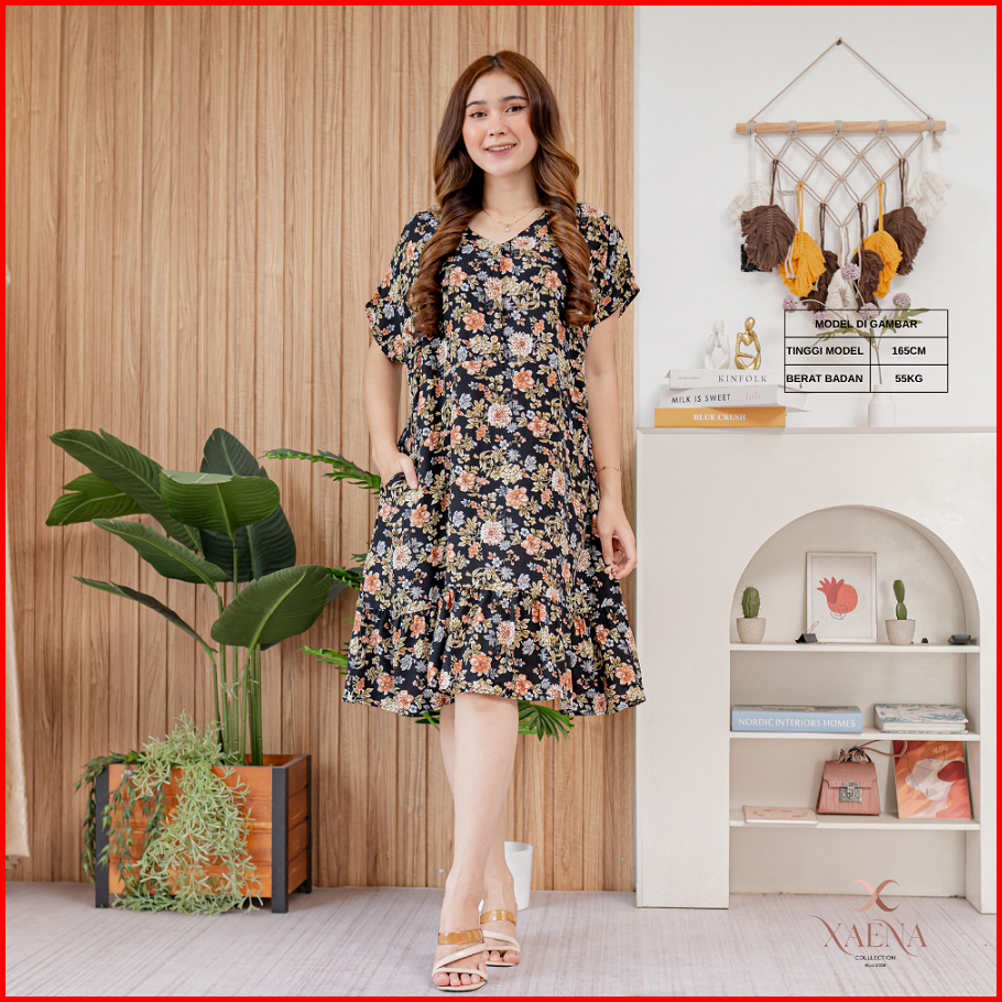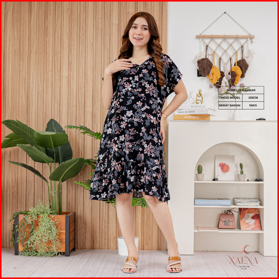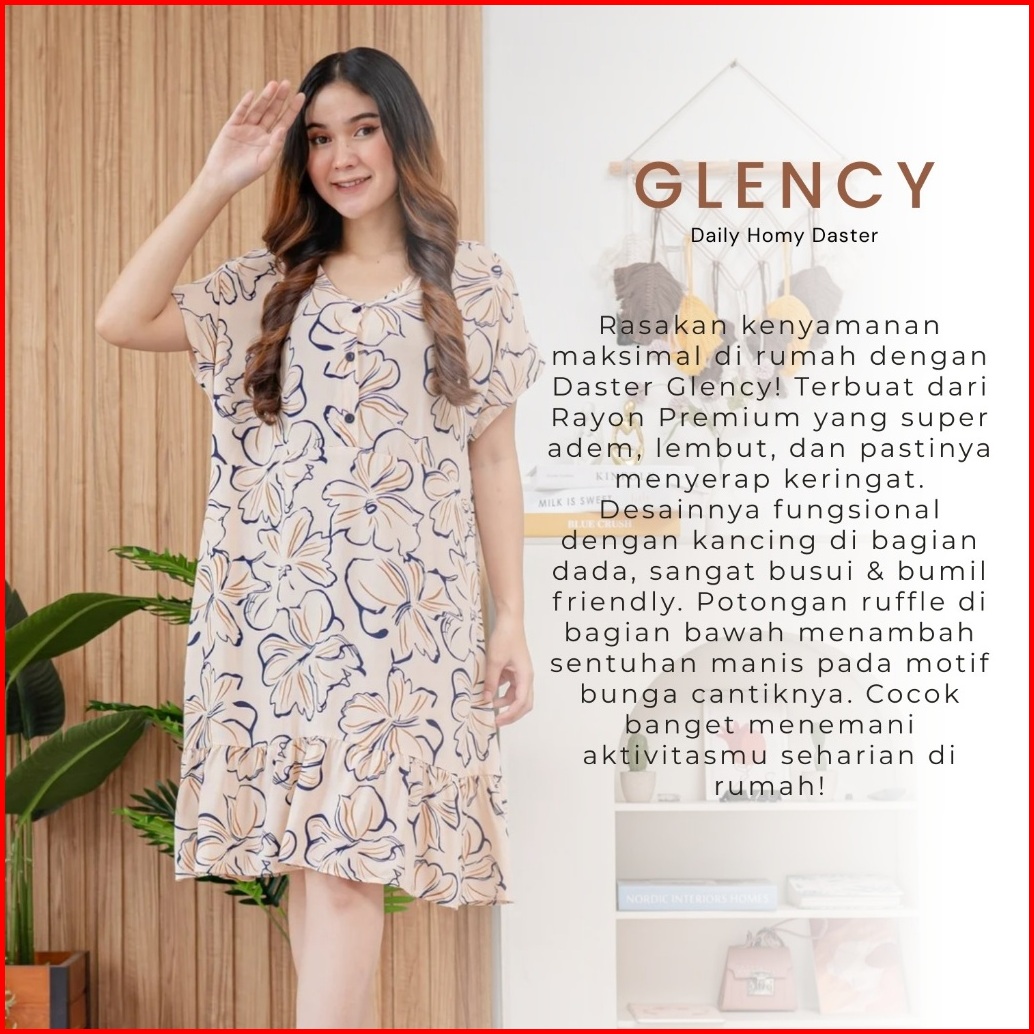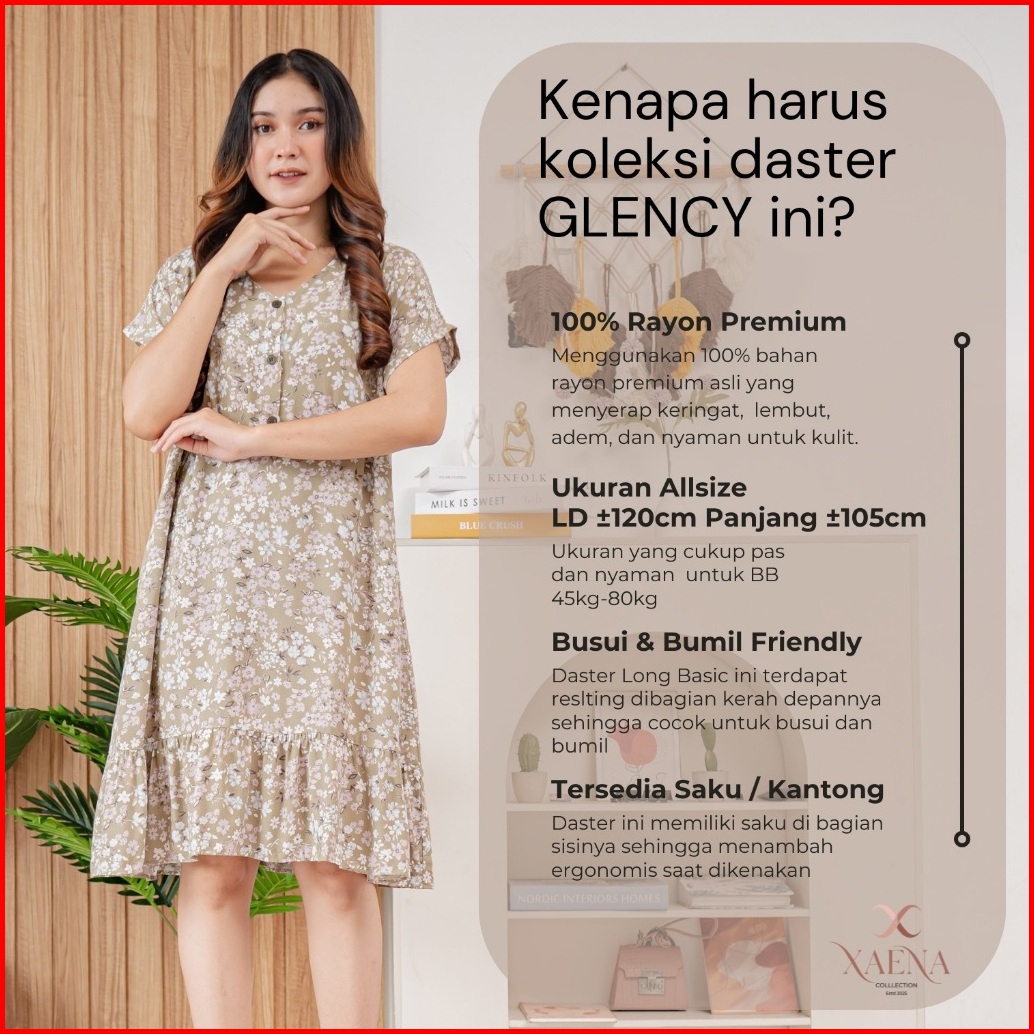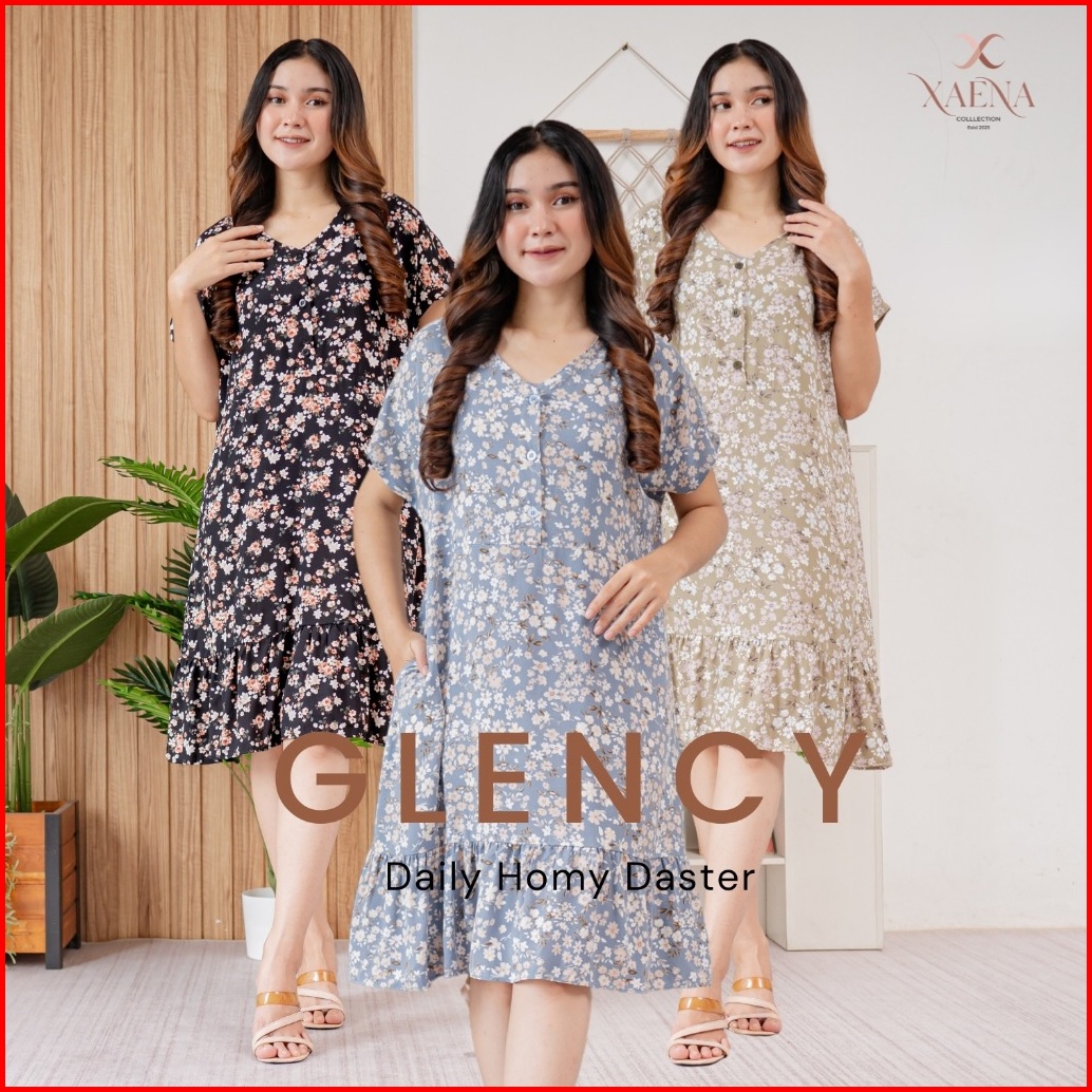 Daster Glency V-neck Kancing Rayon Premium Glency Dress By Xaena
