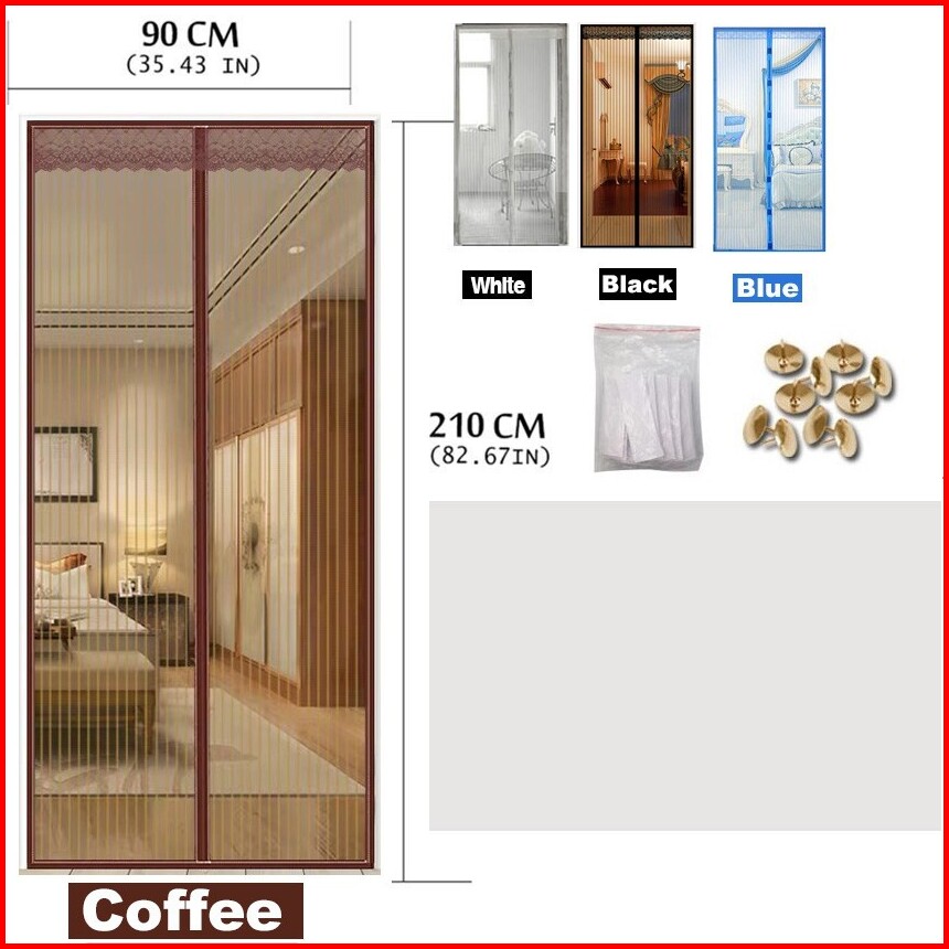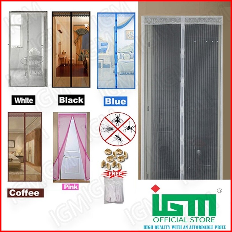 Igm-210 90cm Tirai Pintu Magnet Kawat Nyamuk Magic Net Polos Fiberglass Premium Mesh Tidak Mudah Terbakar Tirai Pintu Ka