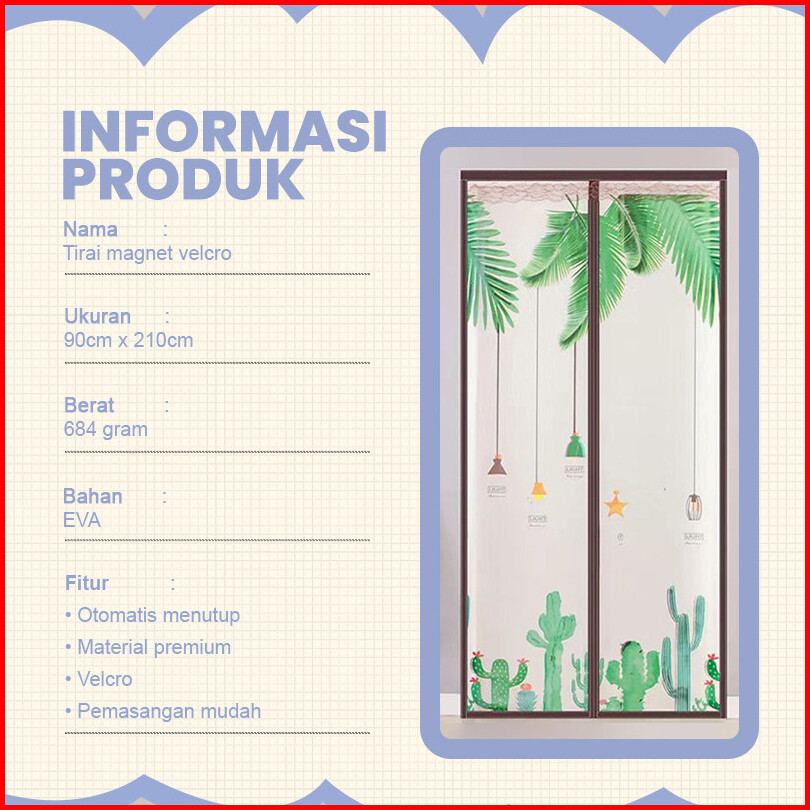 Tirai Magnet Elegan Bahan Tirai Pintu Kamar Motif Anti Nyamuk Size 90x210cm