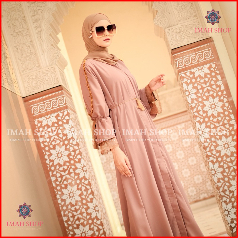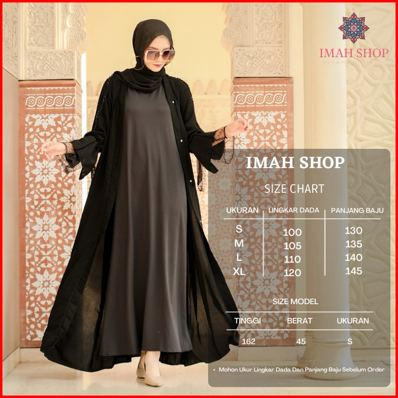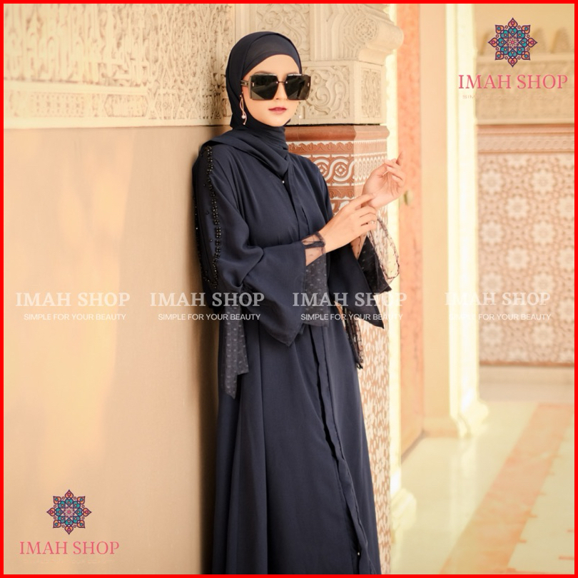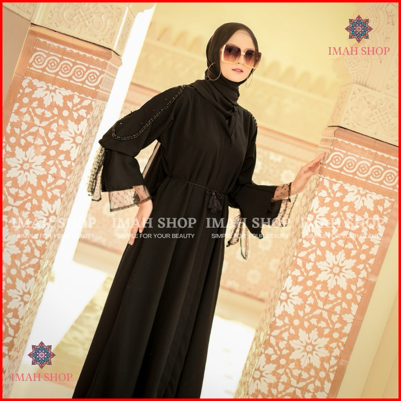 Abaya Hitam Turkey Gamis Syari Muslimah Bahan Jetblack Hitam Kombinasi Tile Polkadot Imah Shop Dress Arab Saudi 969