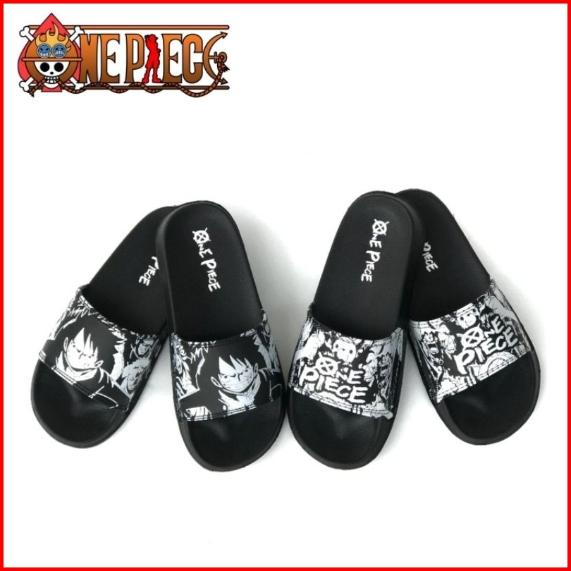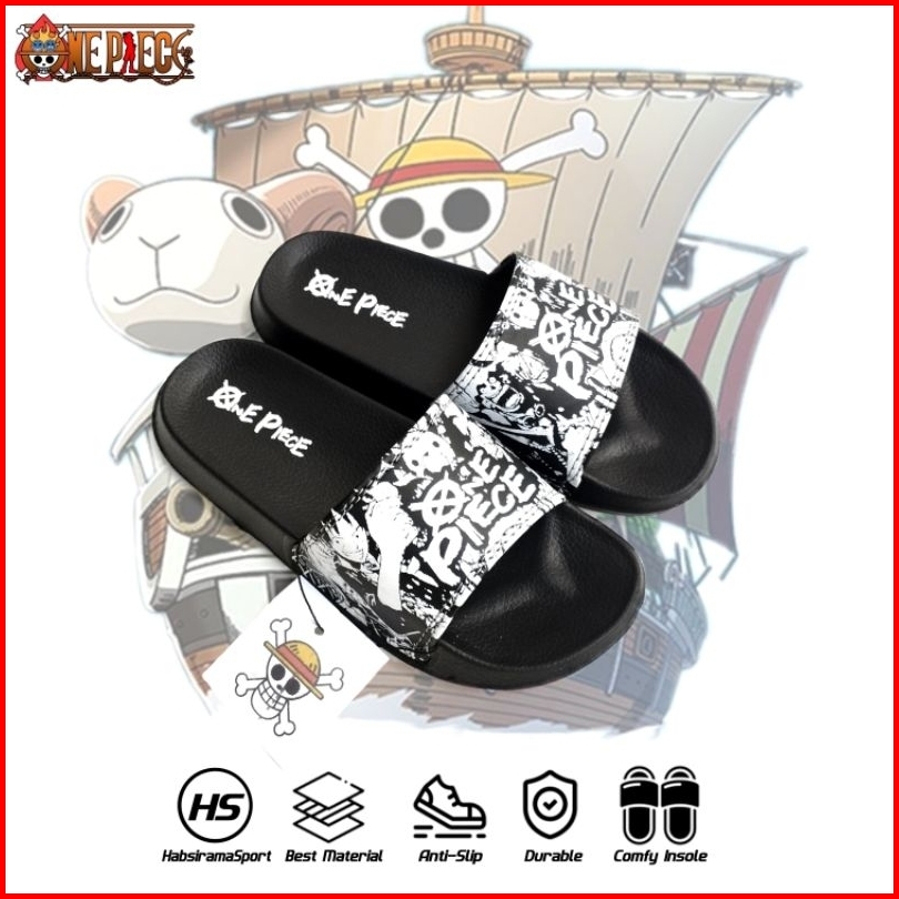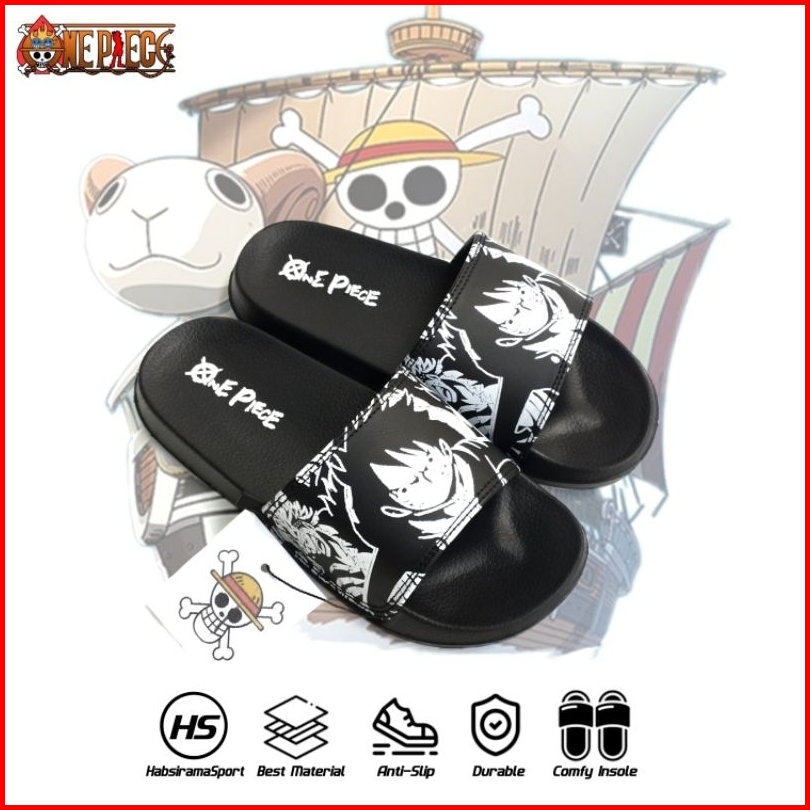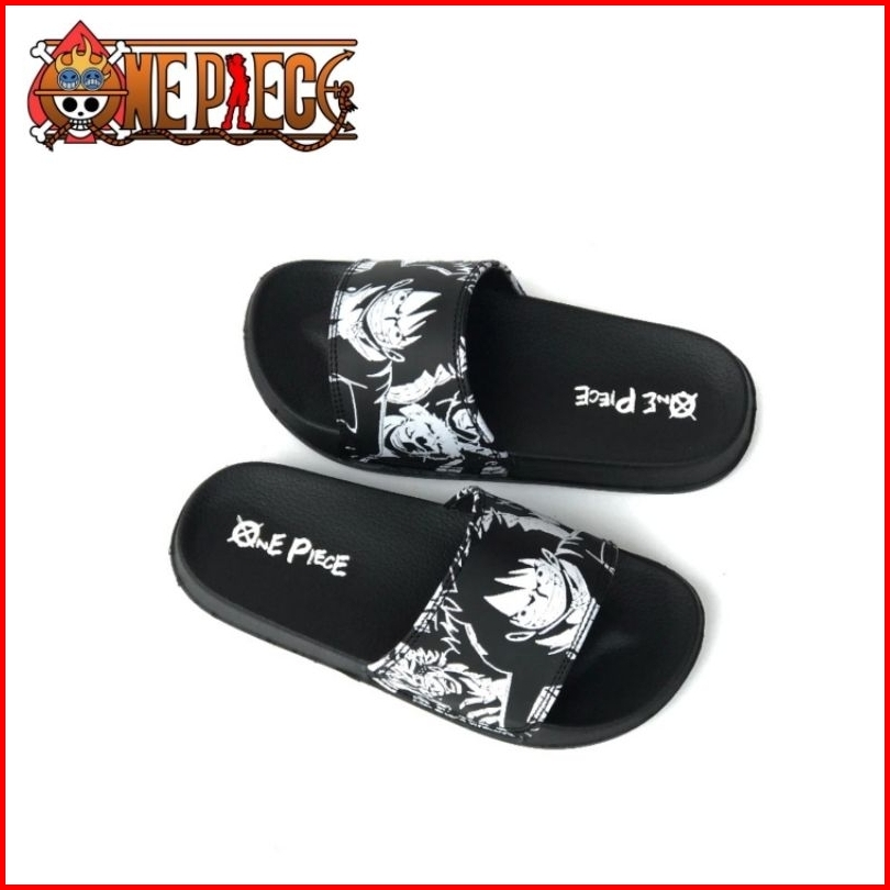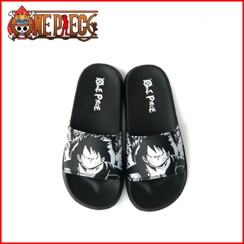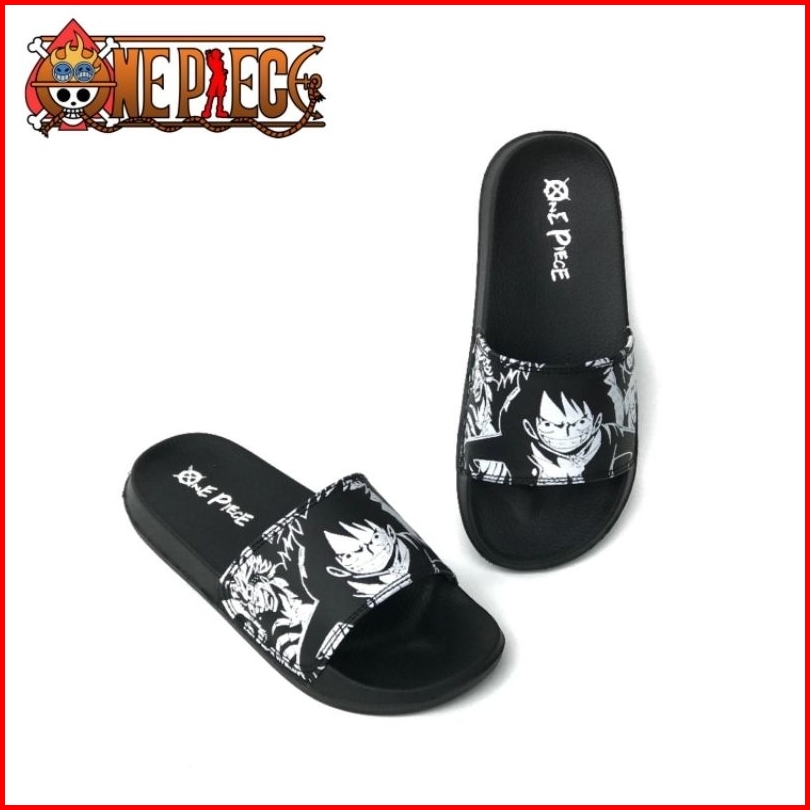 Sandal Selop Anak Motif Onepiece Luffy Hitam Putih Bahan Ringan Empuk Anti Licin
