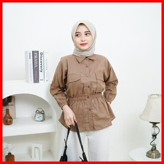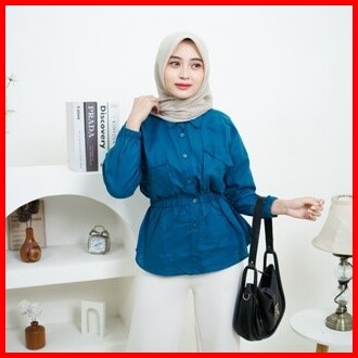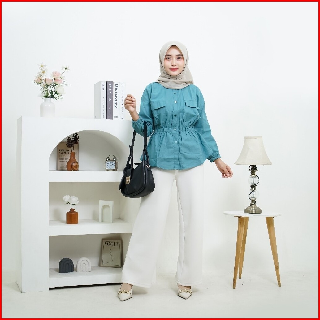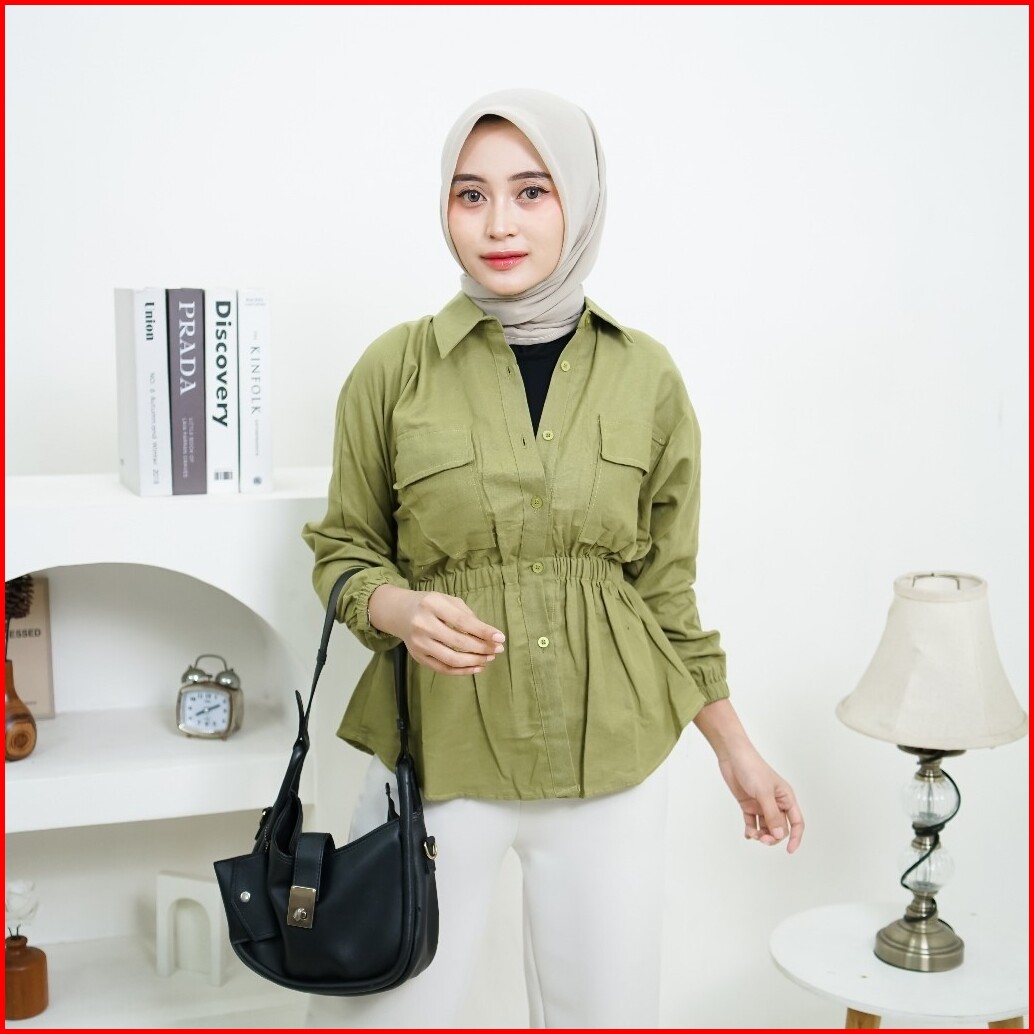 Safira Blouse Wanita Saku Depan Model Kerut Pinggang Baju Atasan Wanita Kemeja Polos Korean Style Kekinian