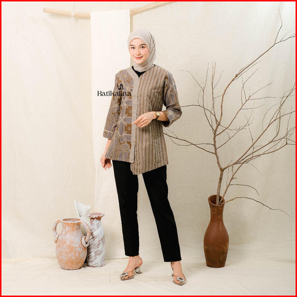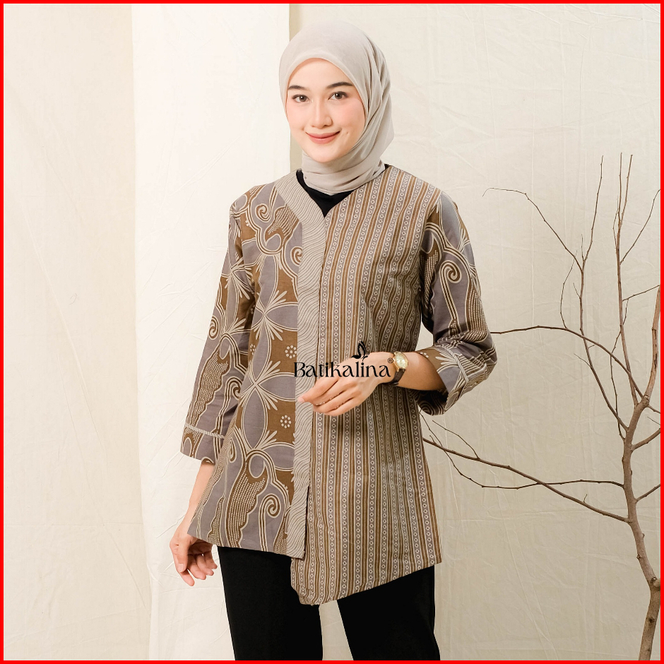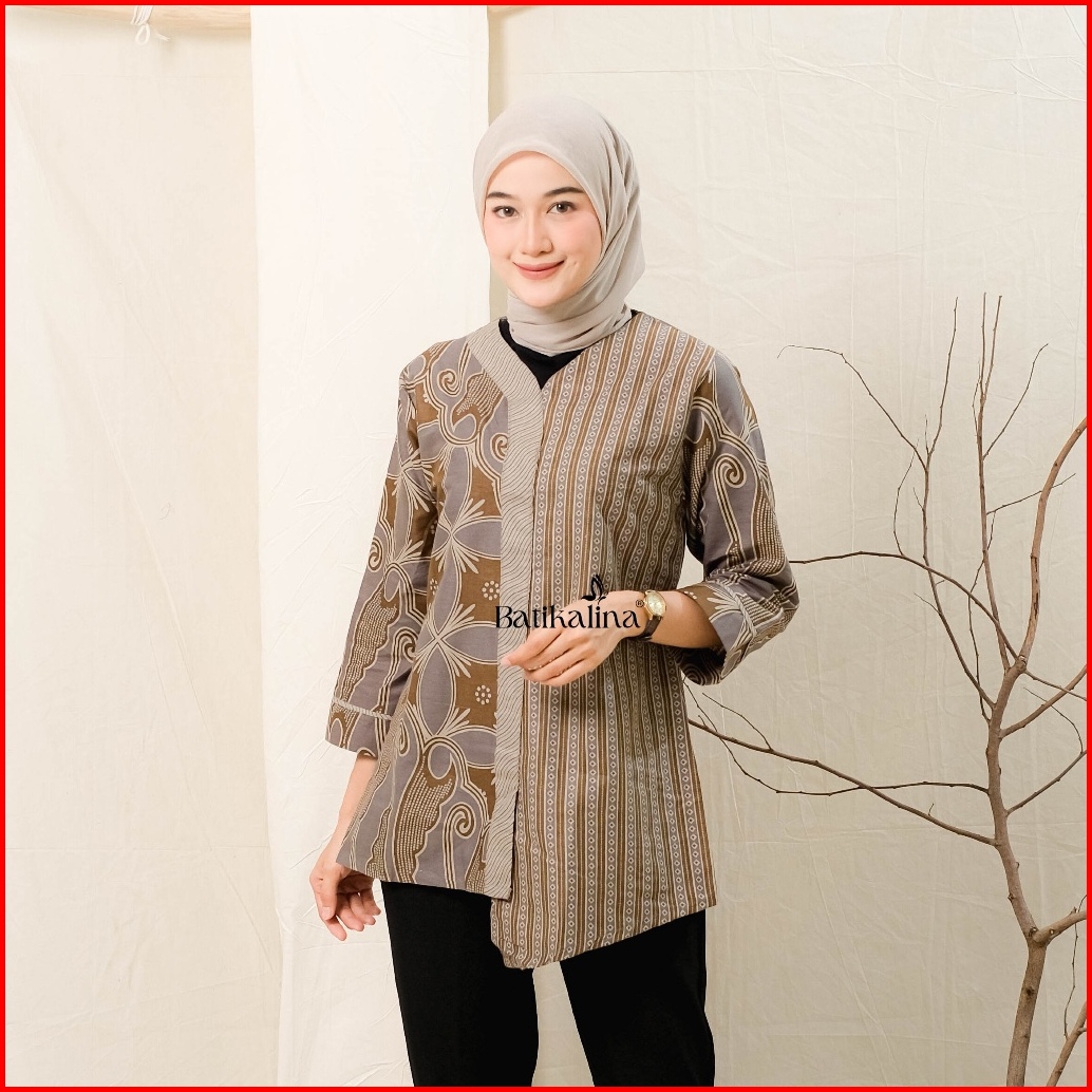 Baju Batik Wanita Modern Atasan Blouse Batik Kerja Kantor Wanita