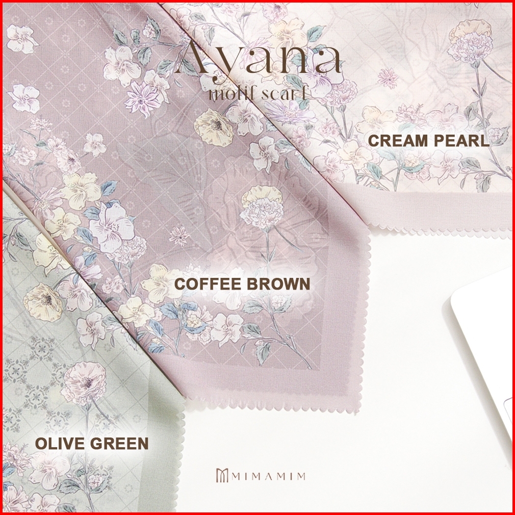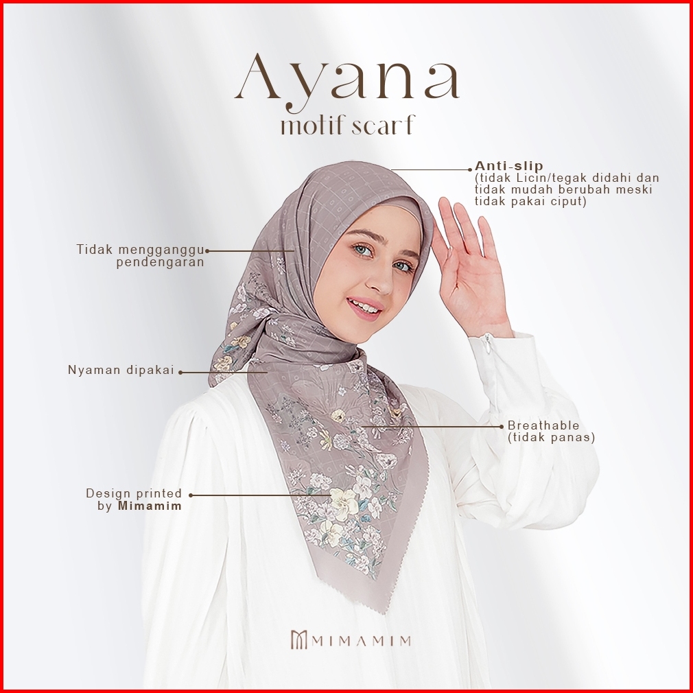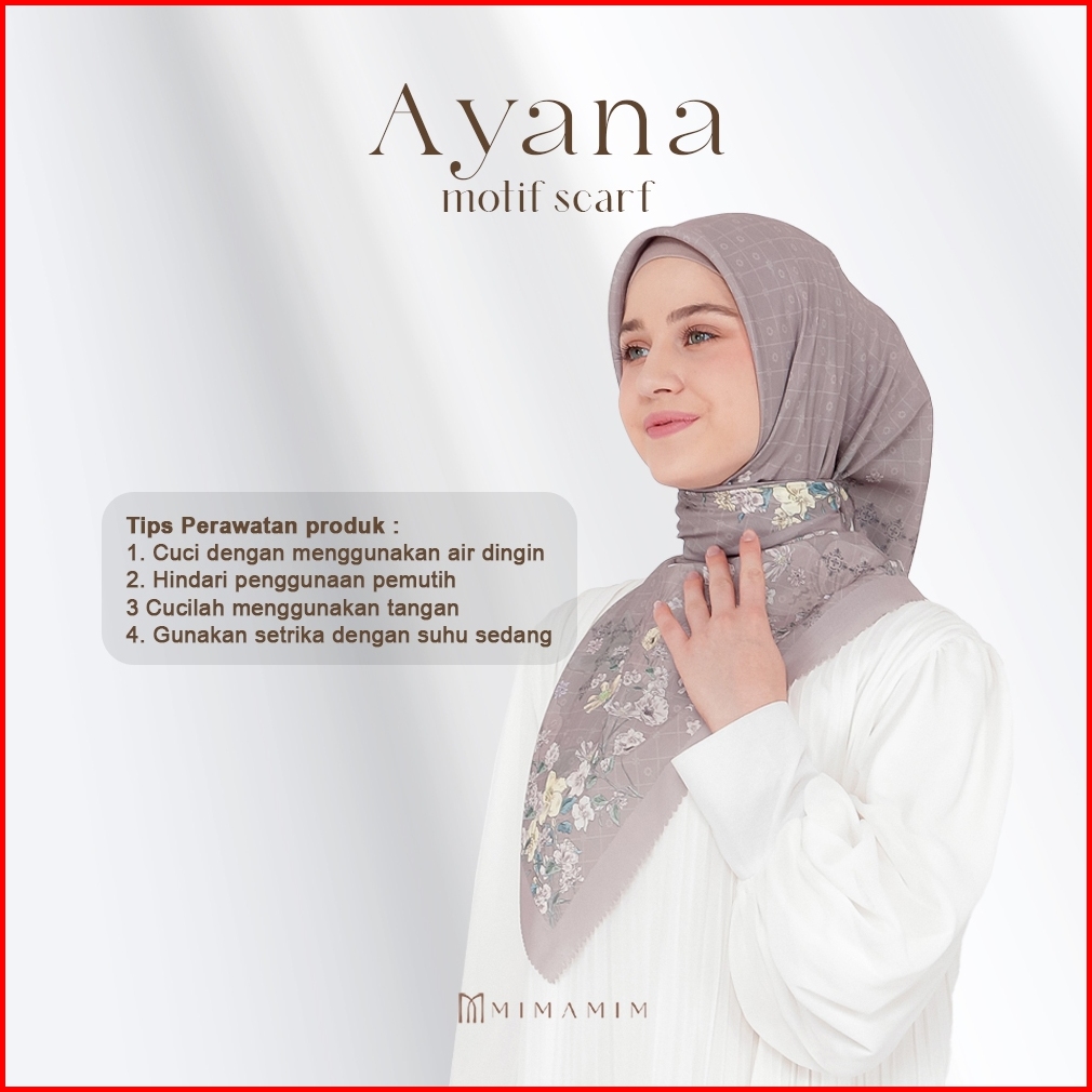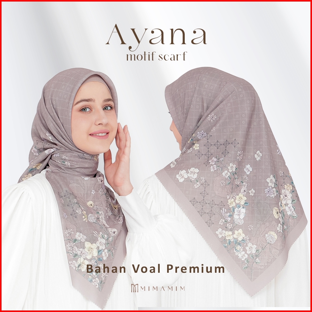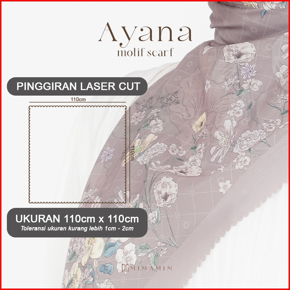 Mimamim Hijab - Jilbab Ayana Segiempat Motif Printed Scarf Voal Premium Kerudung Square Lasercut