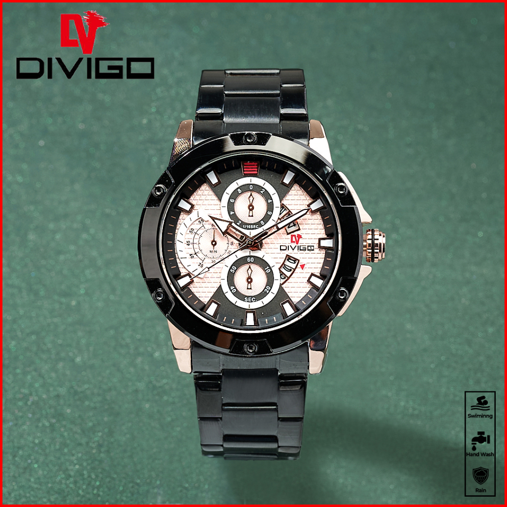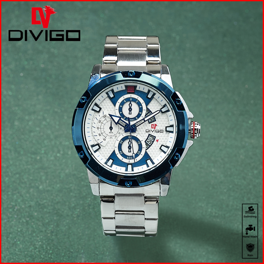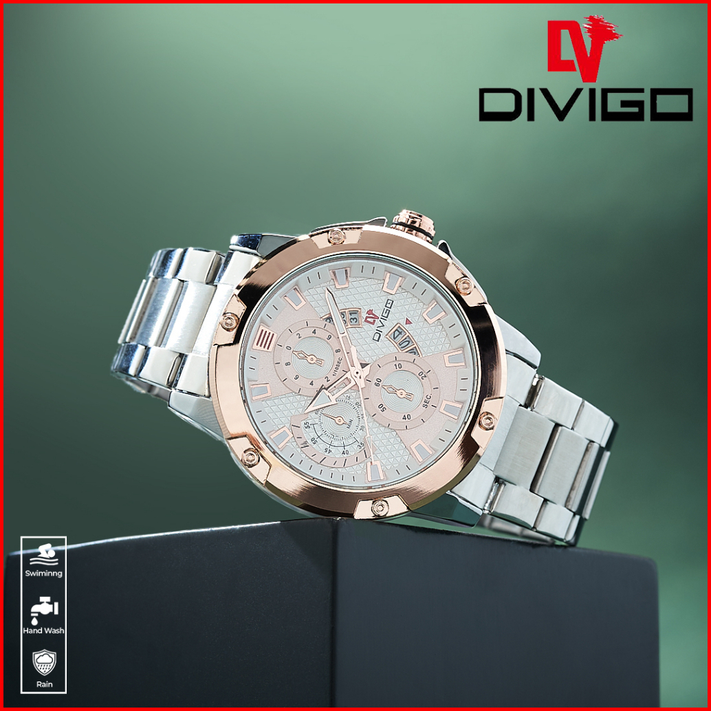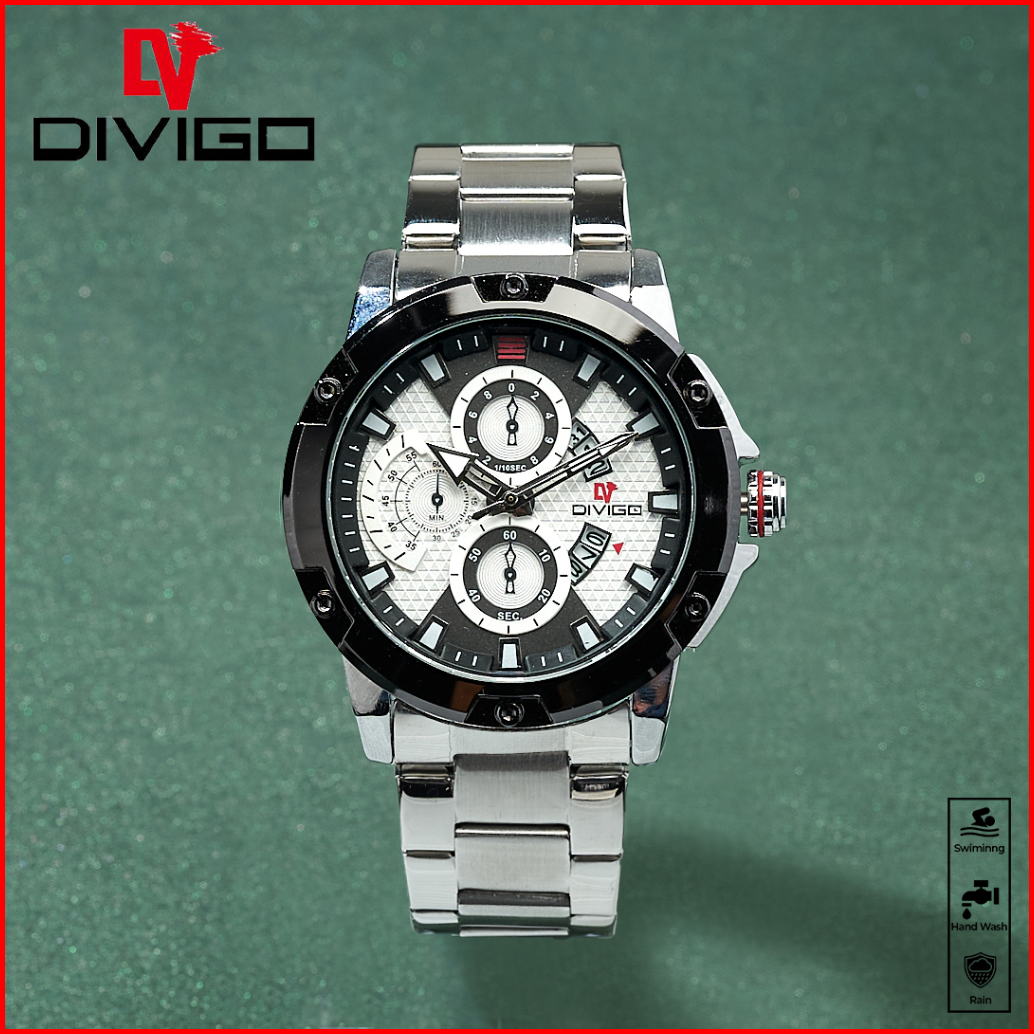 Jam Tangan Pria Divigo Original Dv-7015 Staintless Steel Tanggal Aktif Waterresist