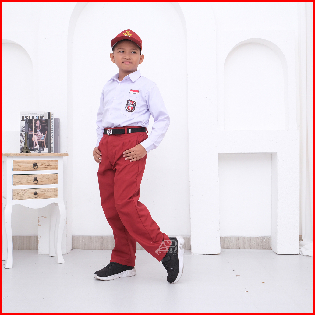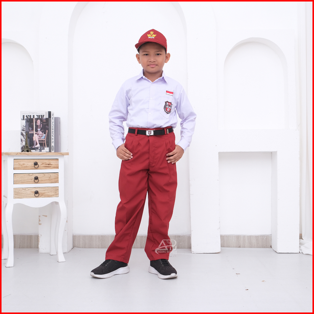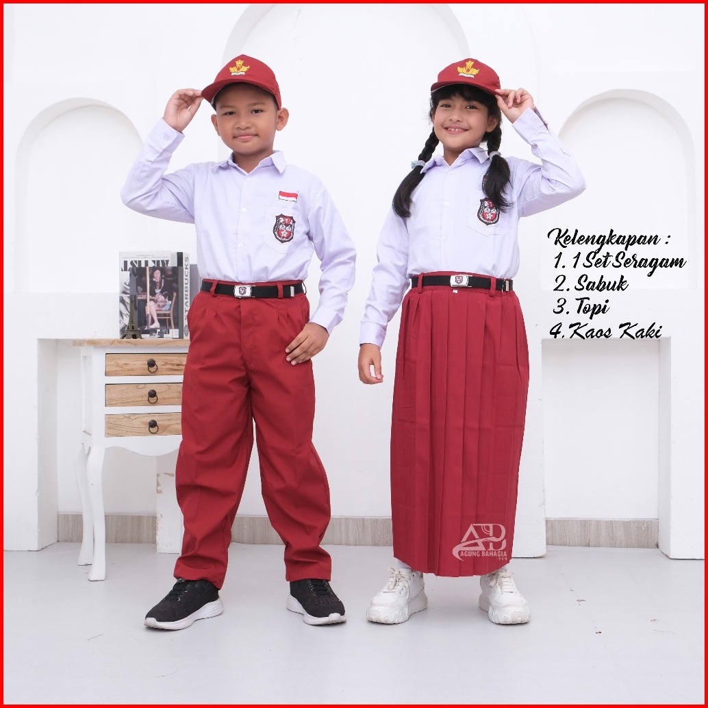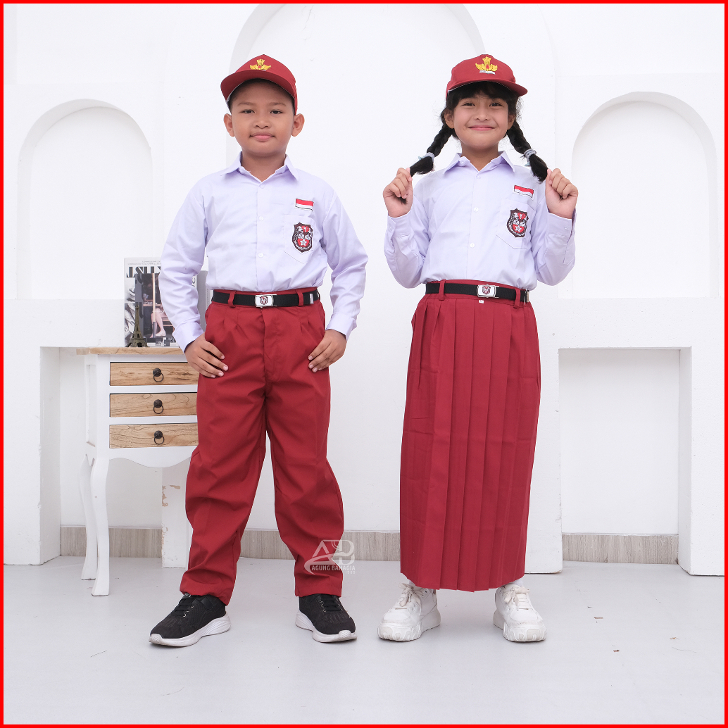 Setelan Lengkap Seragam Sekolah Sd Merah Putih Panjang Anak Laki-laki Perempuan Pakaian Fashion