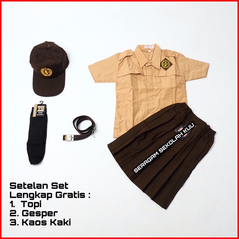 Setelan Super Lengkap Pramuka Seragam Sekolah Sd Perempuan Baju Pendek Rok Pendek