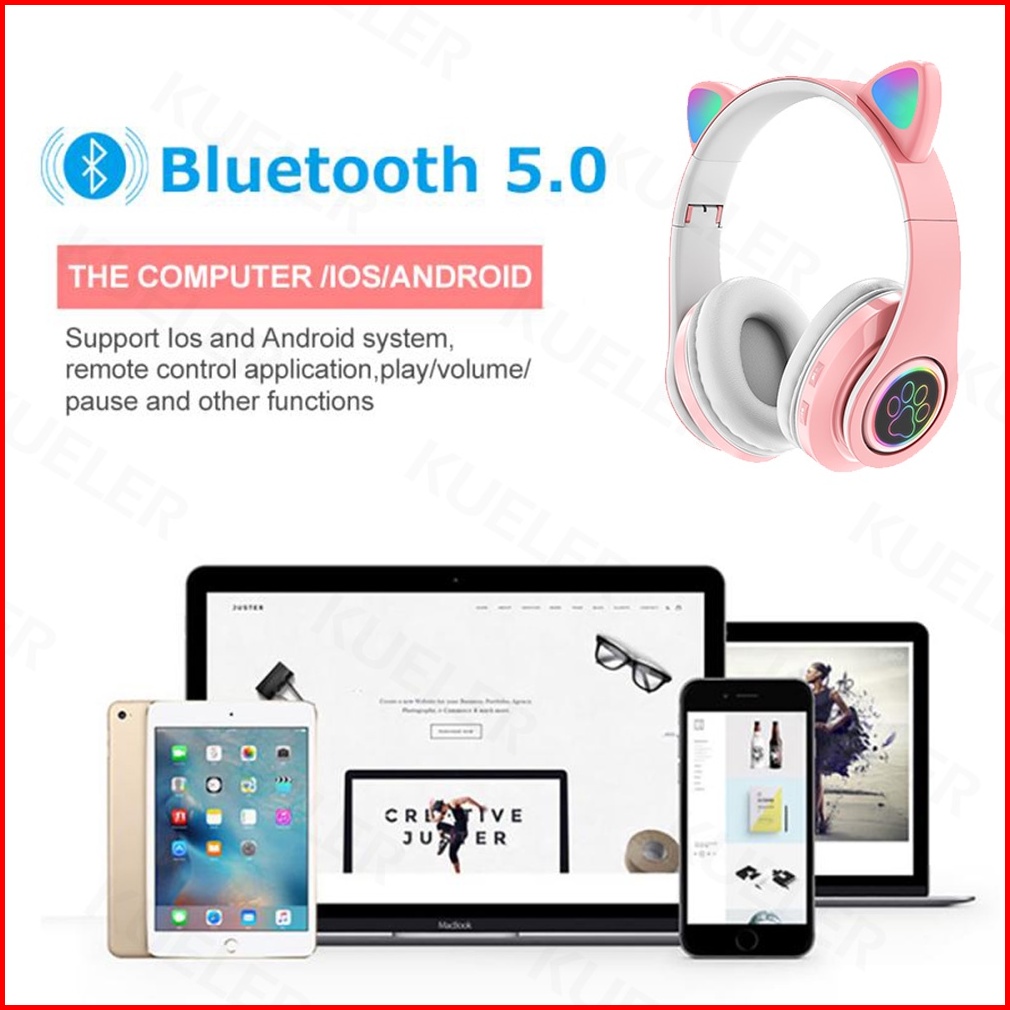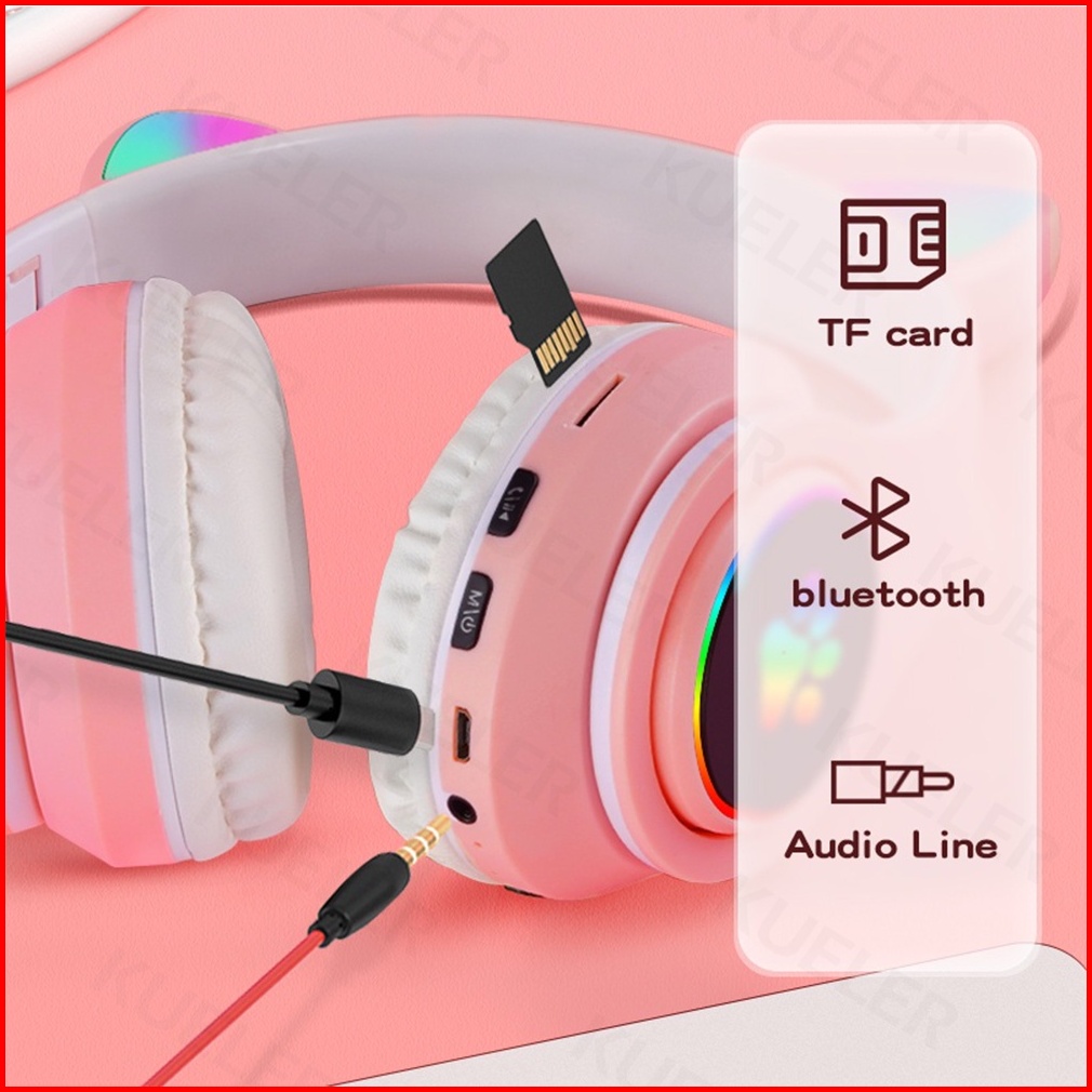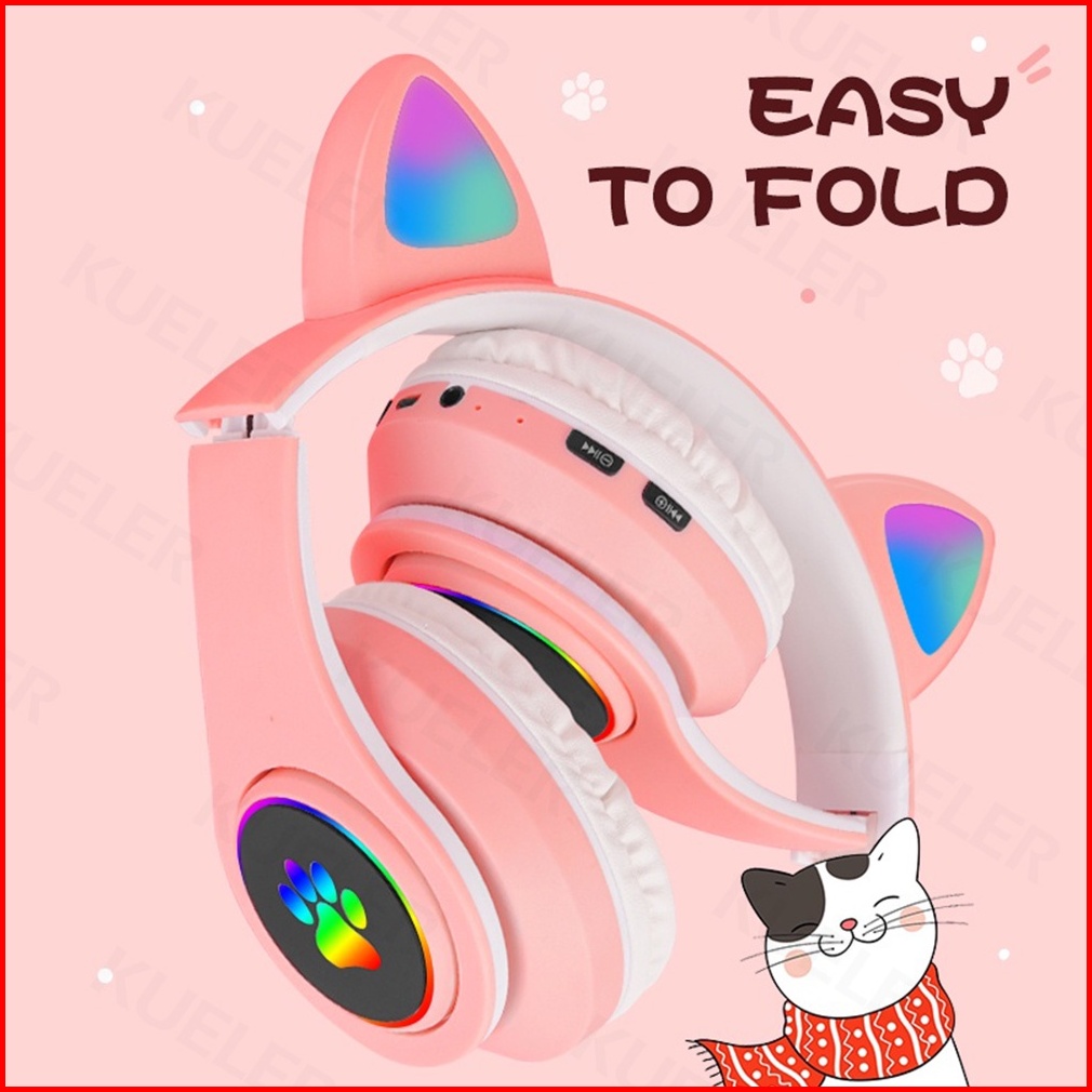 B39m Foldable Led Color Light Cat Ear Headphone With Mic Wireless Headphones Bluetooth Earphone Hifi Stereo Headset Blue