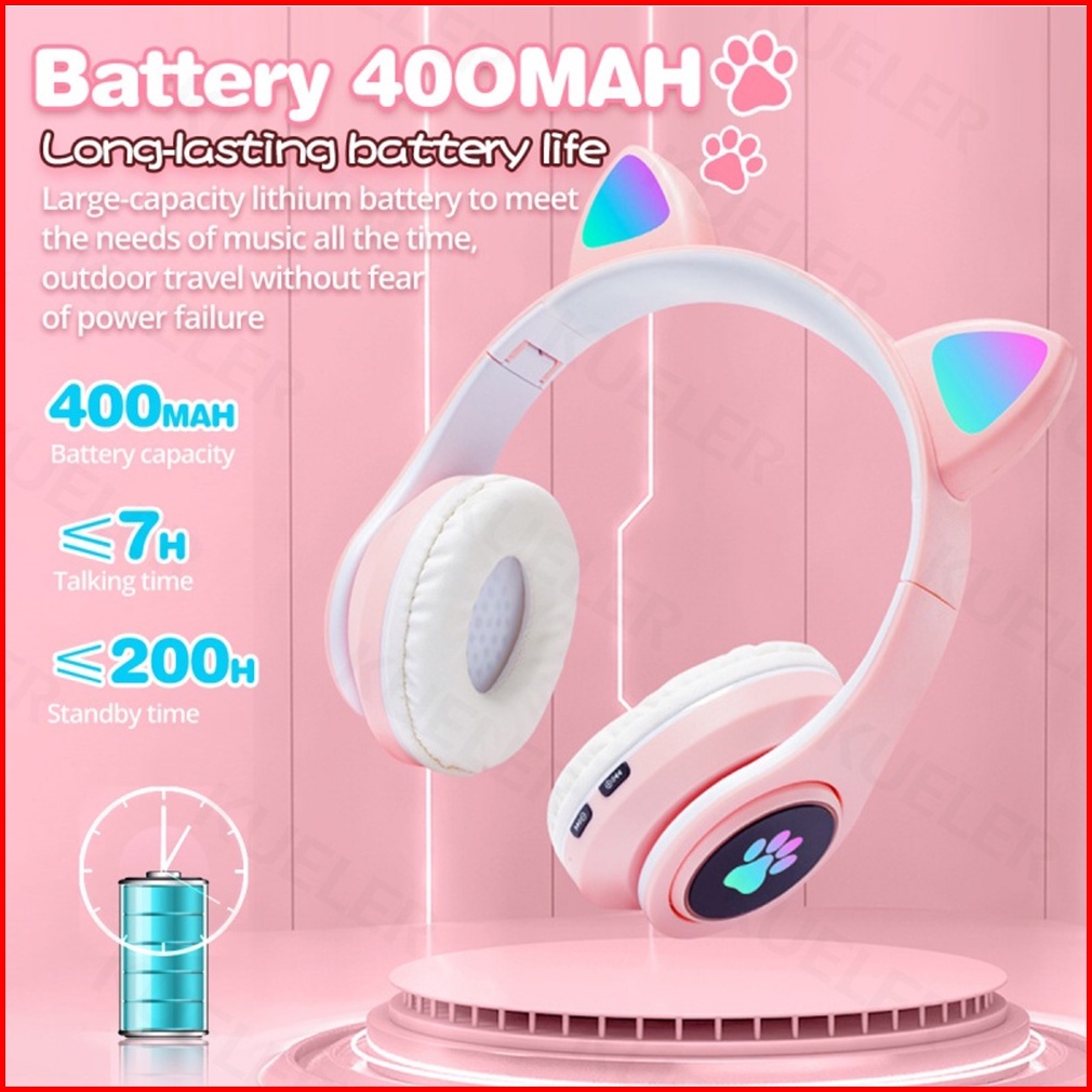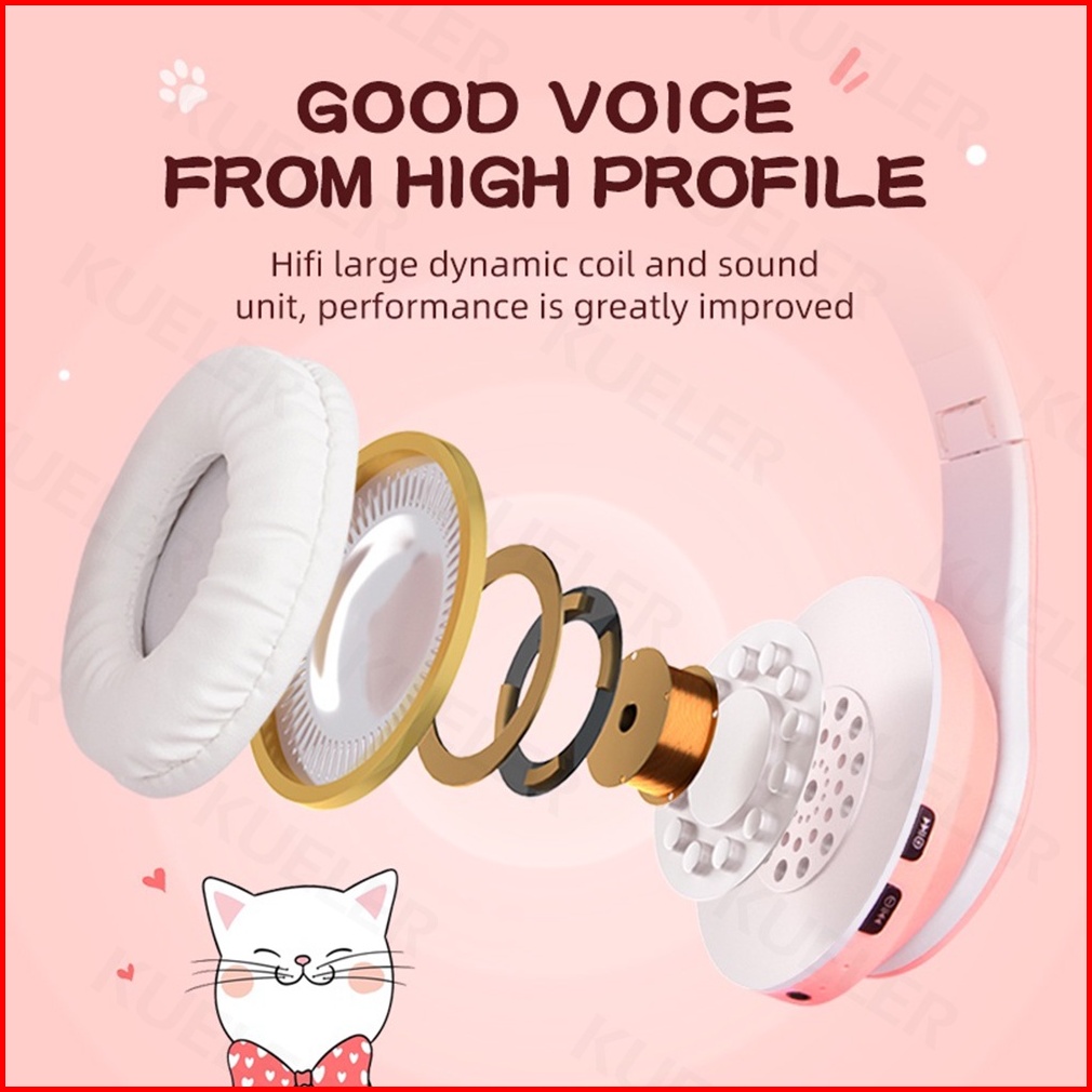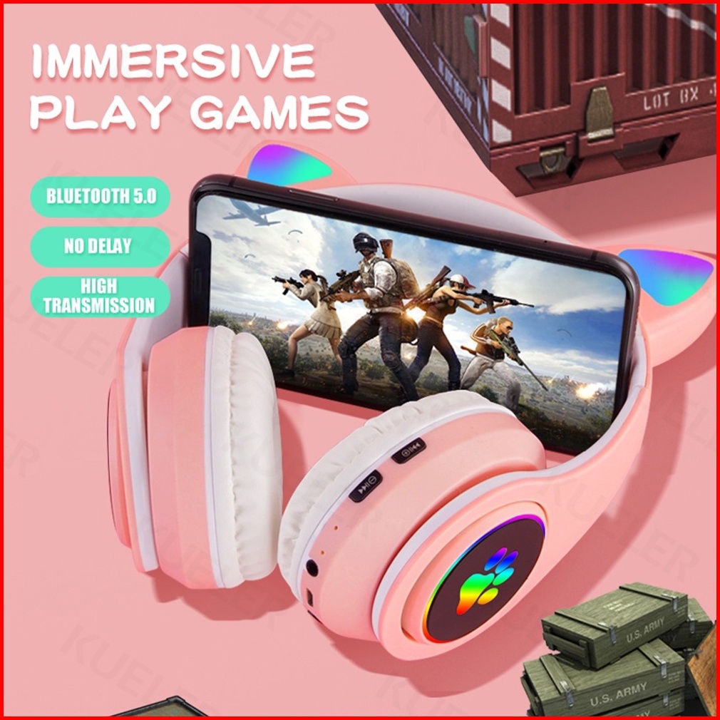 B39m Foldable Led Color Light Cat Ear Headphone With Mic Wireless Headphones Bluetooth Earphone Hifi Stereo Headset Blue