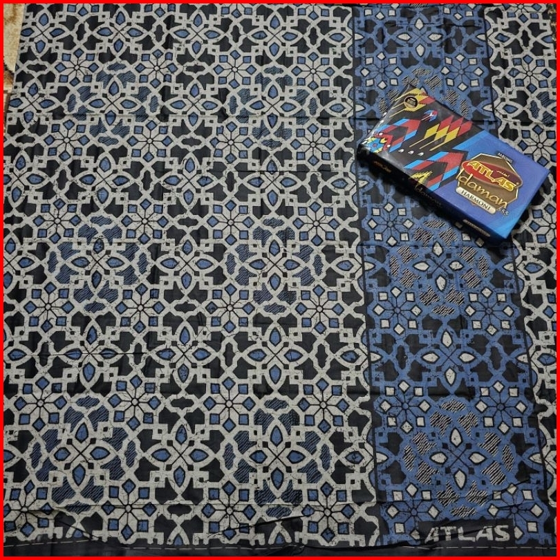 Sarung Atlas Idaman Kembang Sarung Atlas Motif Bhs Sarung Atlas Idaman Harmoni Kembang Dan Batik - Hitam Putih Biru Kuni
