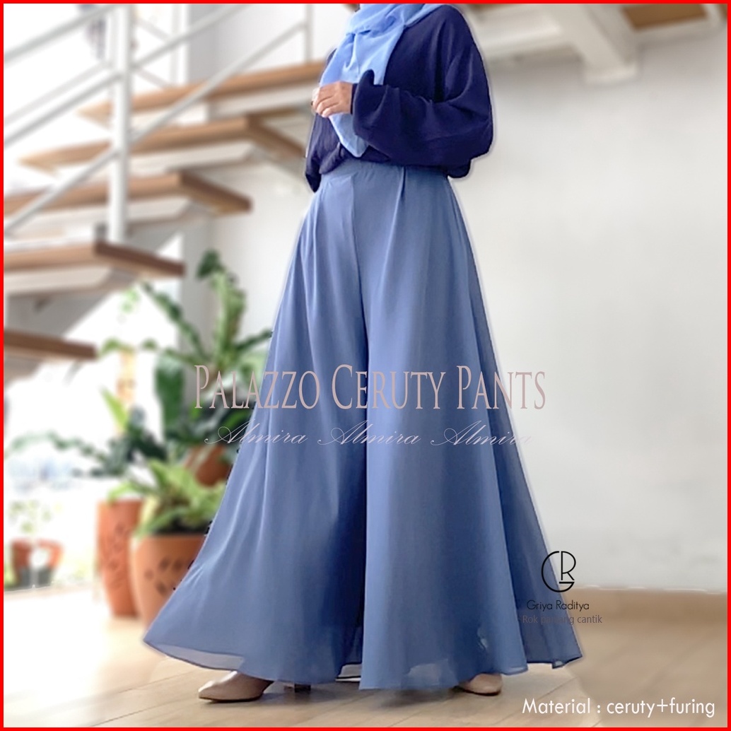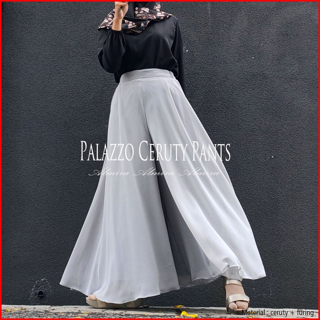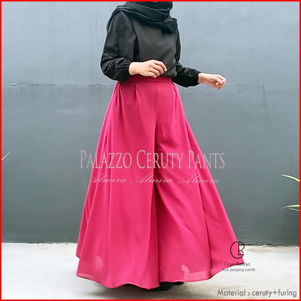 Celana Kulot Panjang Payung Lebar Wanita Muslimah Polos Palazzo Sifon Chiffon Ceruty Pants Almira