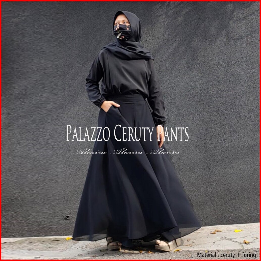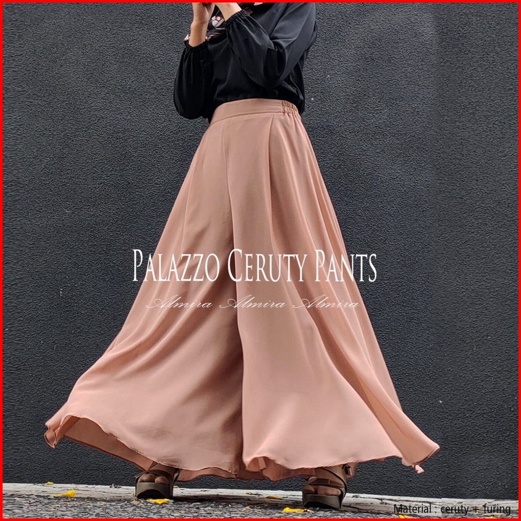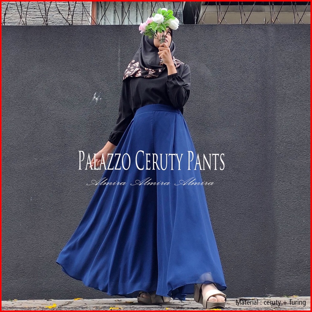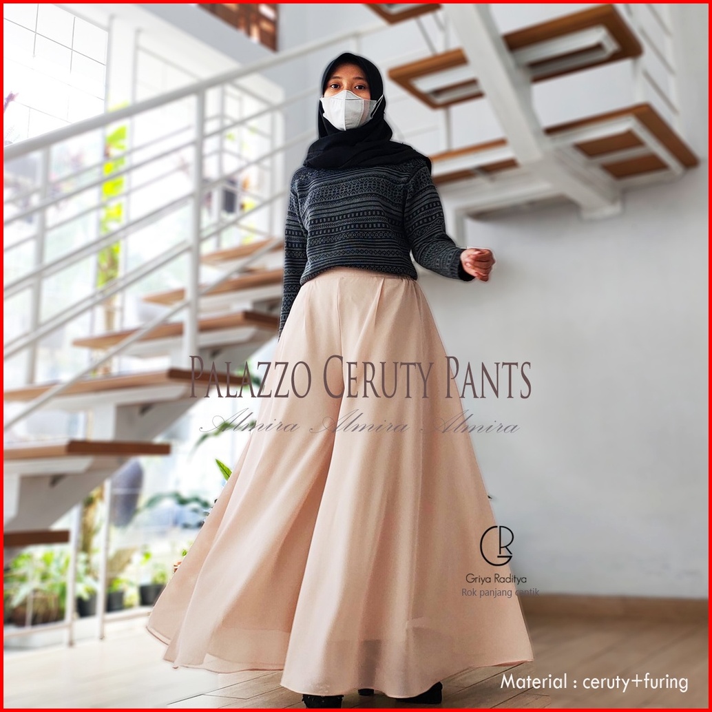 Celana Kulot Panjang Payung Lebar Wanita Muslimah Polos Palazzo Sifon Chiffon Ceruty Pants Almira