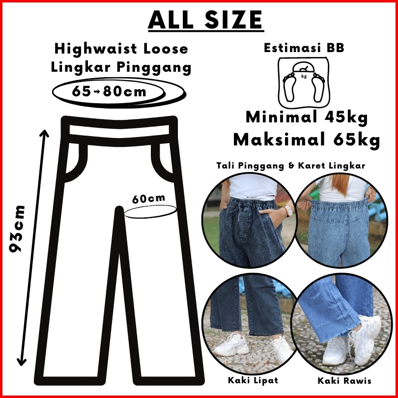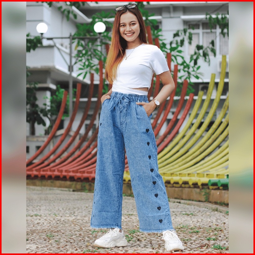 Highwaits Kulot Jeans Wanita Love Pants Loose