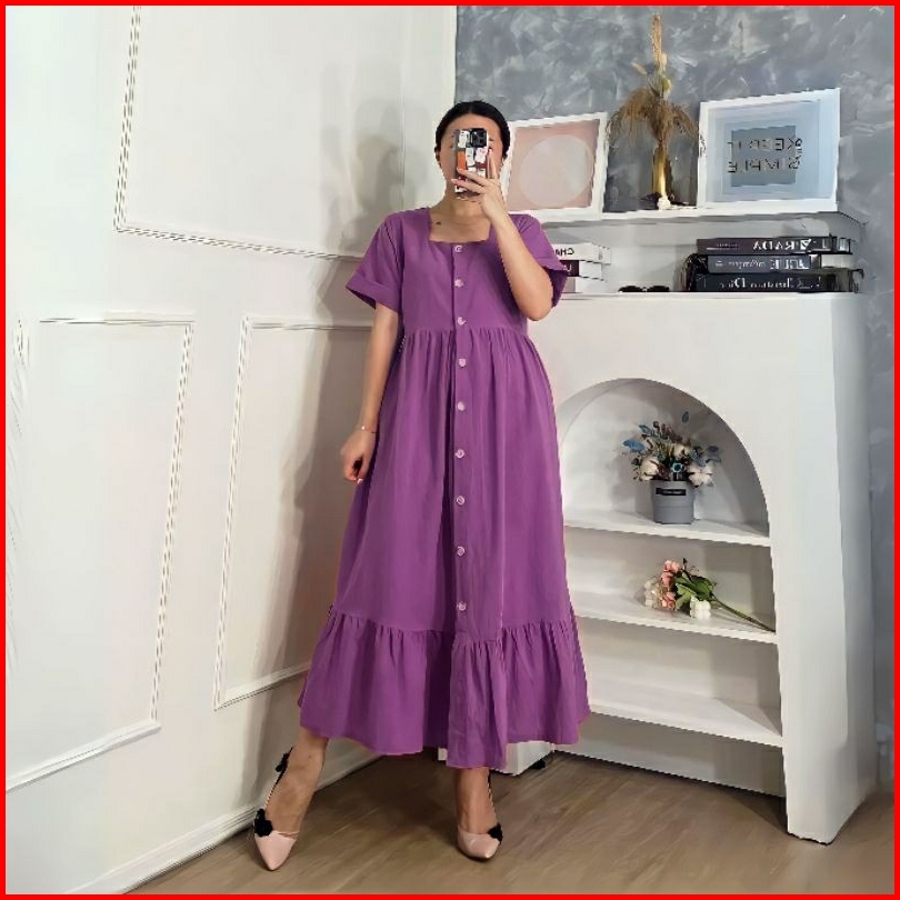Dress Crinkle Airflow Full Kancing Kekinian Murah Meriah Dres Polos Kringkel Kekinian Daster Kringkel Kekinian Terbaru T