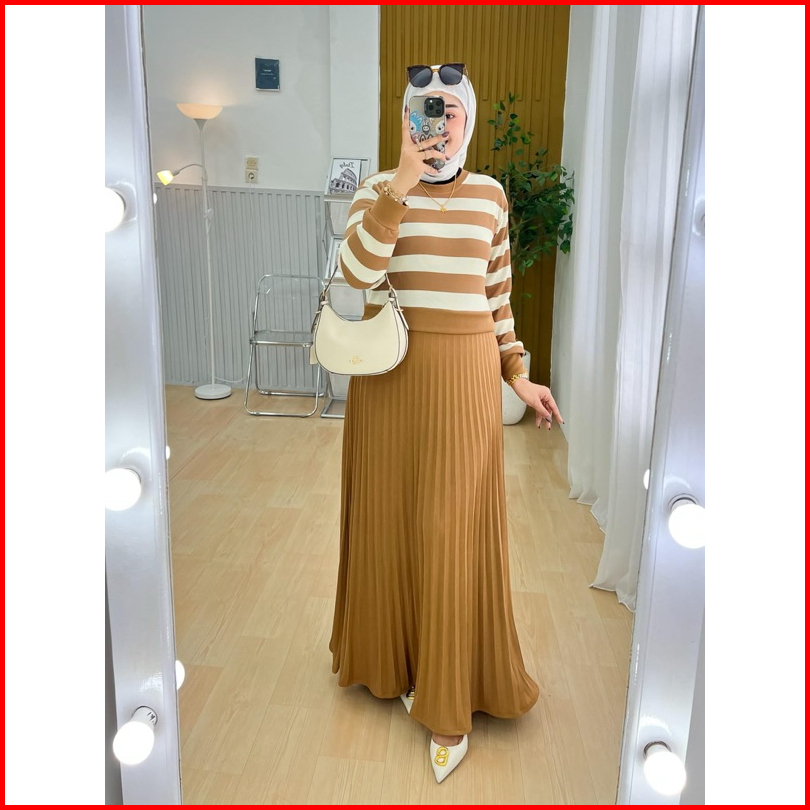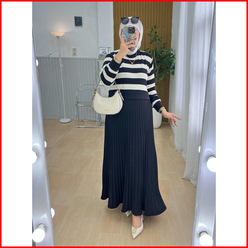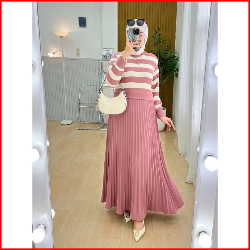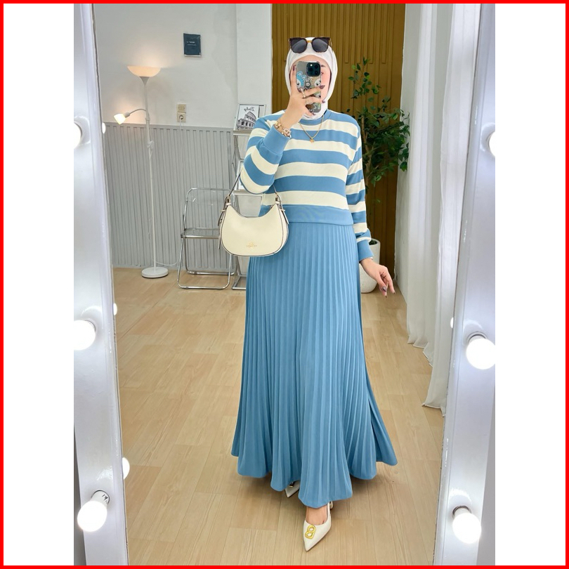 Gamis Prisket Cantik Salur Kaos Knit Rajut Terbaru