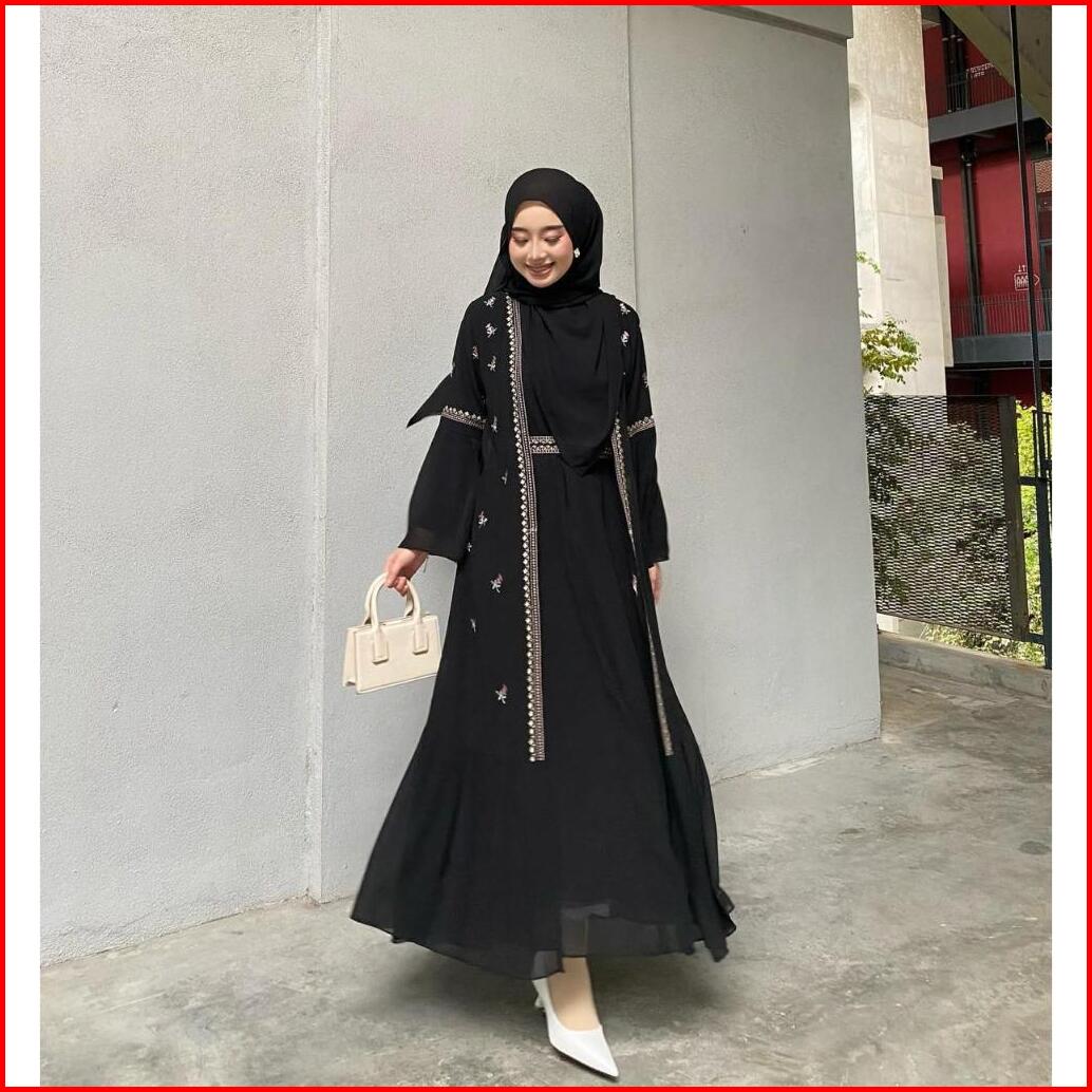 Safwa Abaya Mewah Elegan Abaya Turkey Hitam Abaya Malay Outer Bisa Dilepas Abaya Remaja Kekinian Bahan Ceruty Babydoll