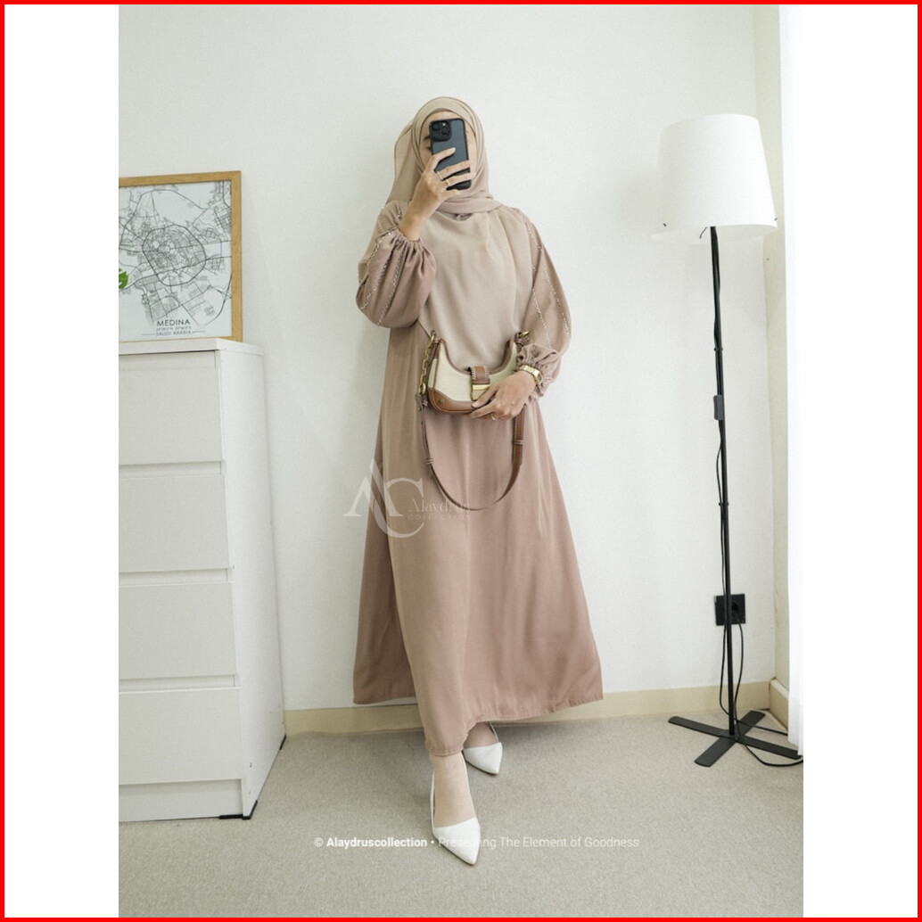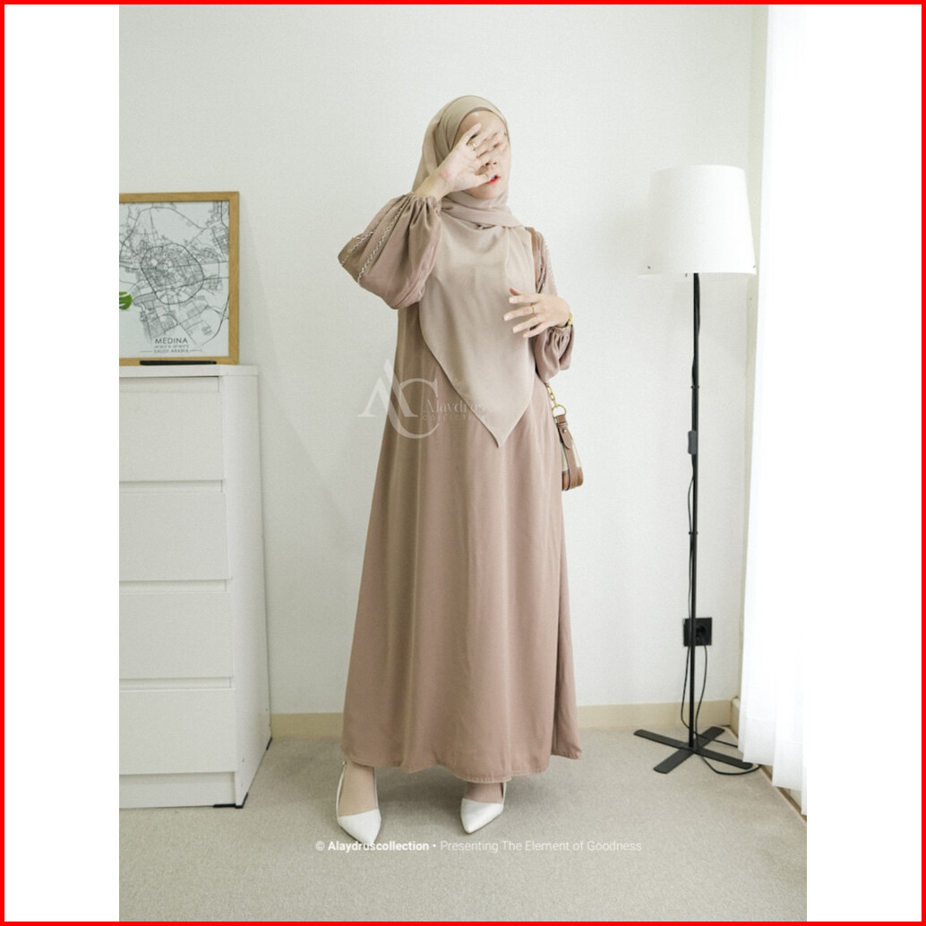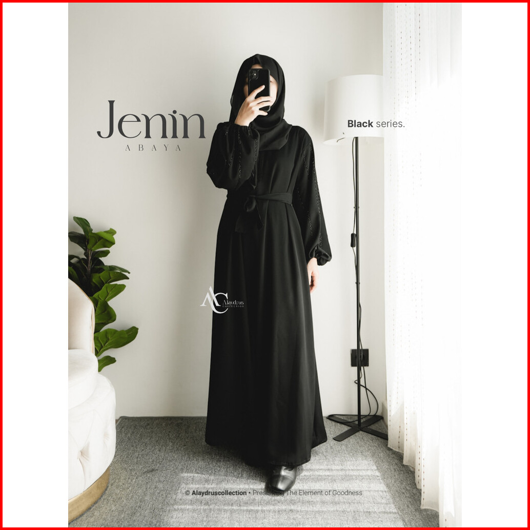 Alaydrus Collection Jenin Abaya Hitam Turkey Gamis Syari Muslimah Bahan Fursan Hitam Kombinasi Dress