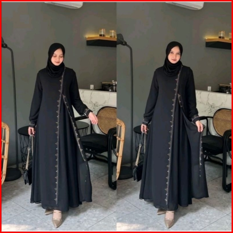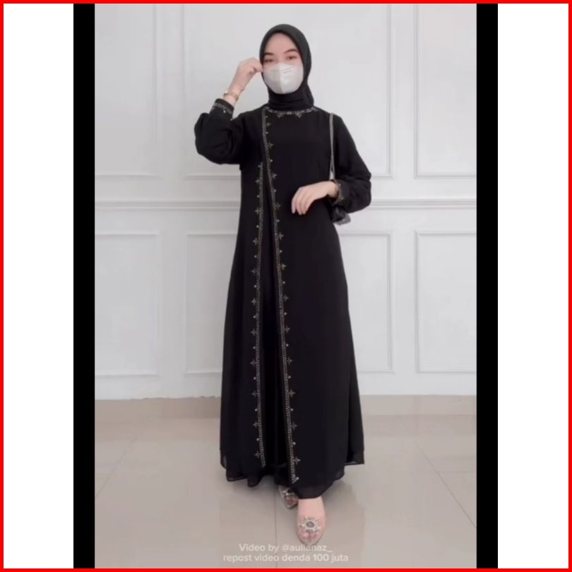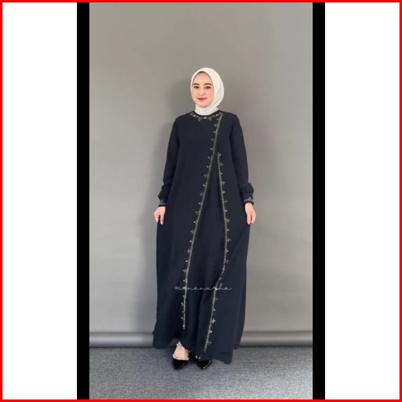 Tera Dress Ceruty Abaya Hitam Turkey Gamis Syari Muslimah Dress Hitam Gamis Lebaran Black Dress Payet Bordir Gamis Free