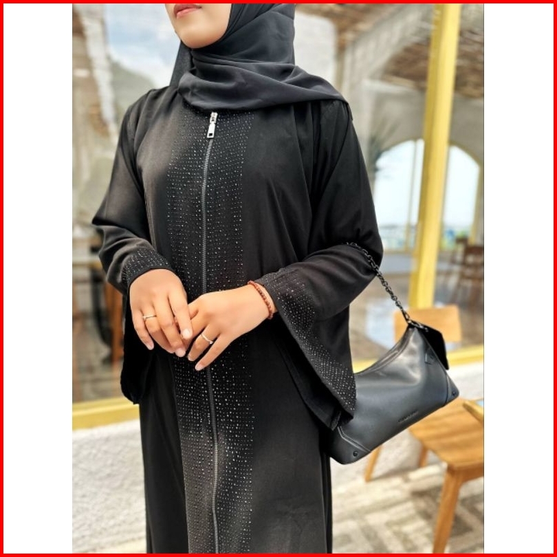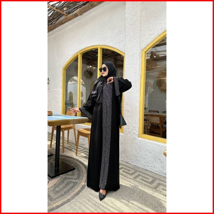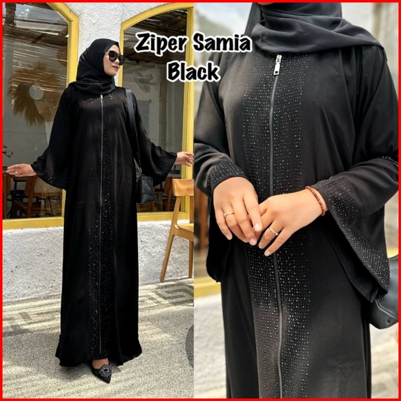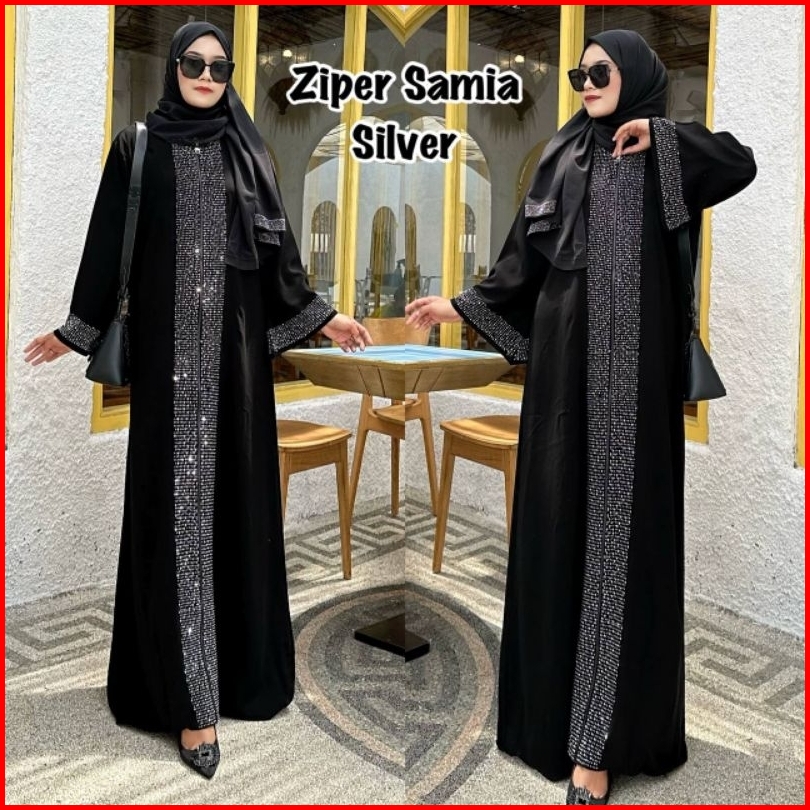 Abaya Hitam Gamis Wanita Cantik Collection Fashion Muslim Arabian Ziper Samia Silver Dan Black