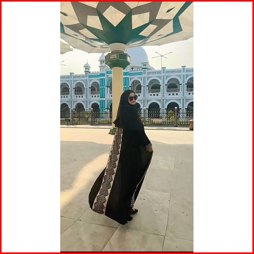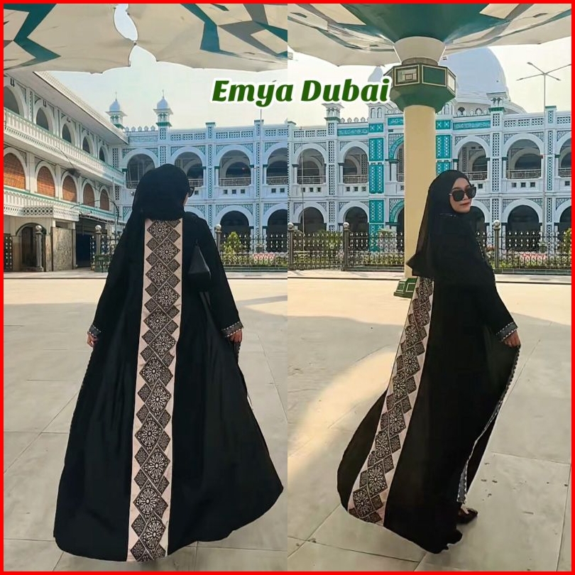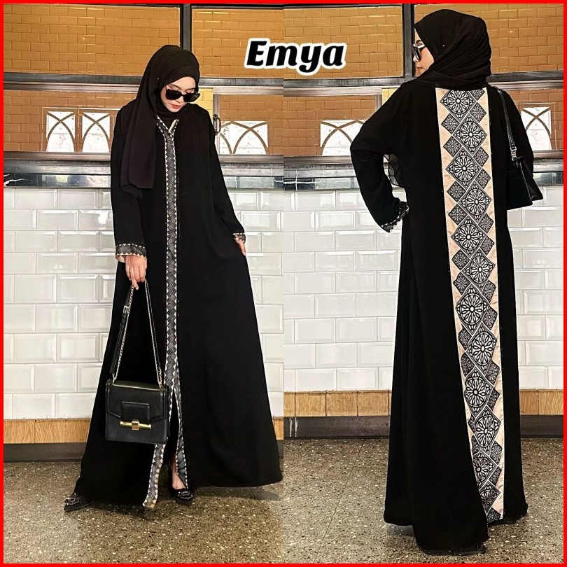 Abayah Gamis Hitam Maxy Dress Brokat Silky Fashion Muslim Wanita Dewasa Dubai Jalabyah Emya