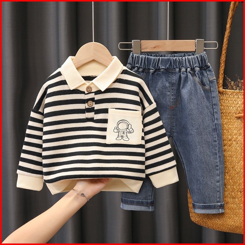 Setelan Anak Laki Laki Motif Salur Astronot Bahan Tebal Dan Halus Baju Anak 6 Bulan Sampai 5 Tahun Sweater Anak Laki Lak