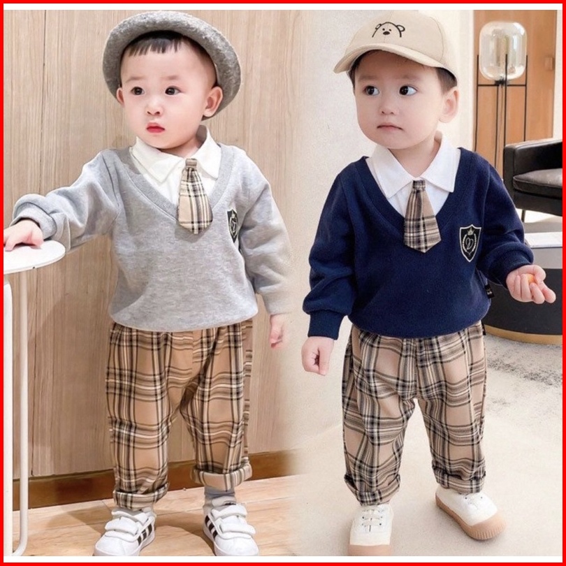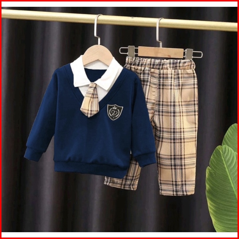 Baju Dan Celana Anak Motif Berdasi School 1-5 Tahun
