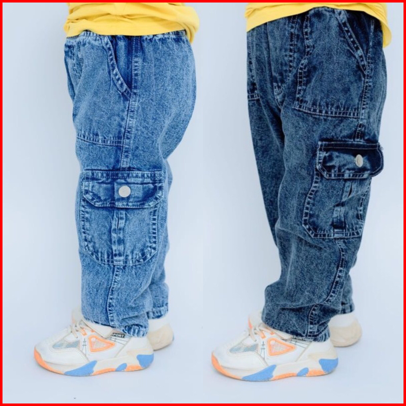 Celana Panjang Jeans Cargo Anak Laki - Laki Umur 1-7 Tahun