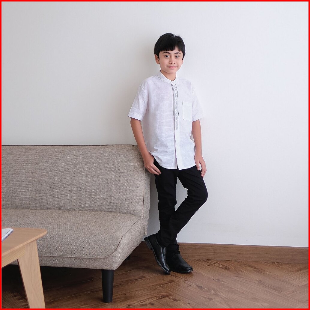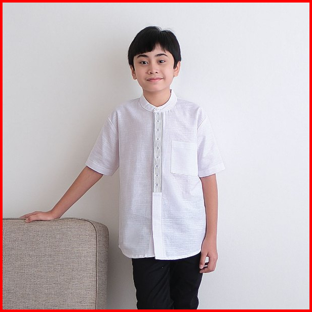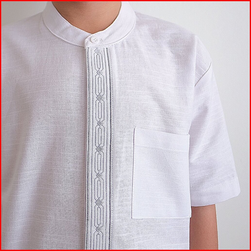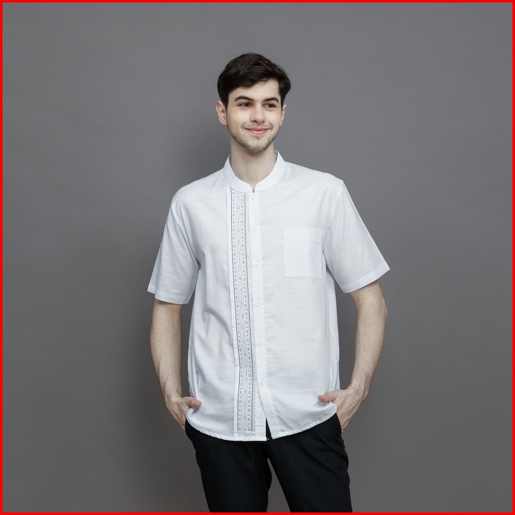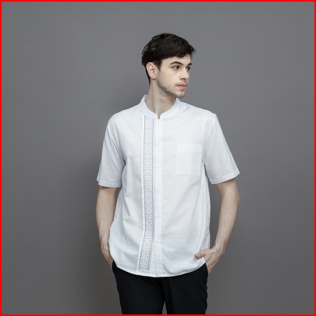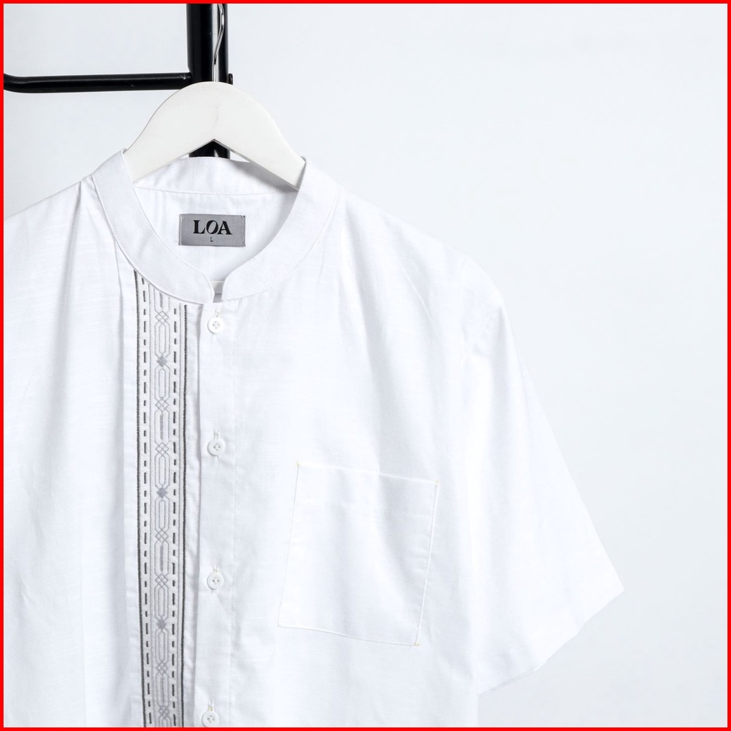 Loa Studios Baju Koko Pria - Kanz - Kemeja Koko Pria Bordir Lengan Pendek - Putih By Loa Studios