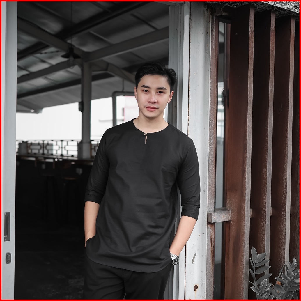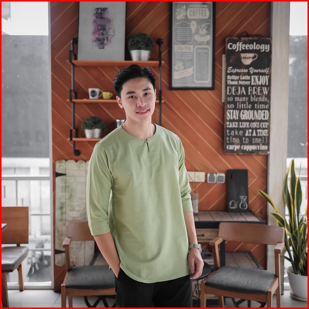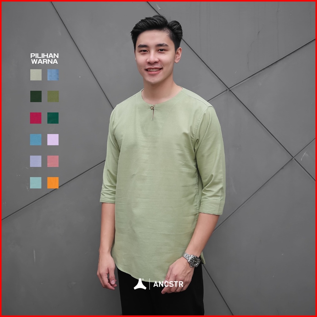 Ancstr Kemeja Pria Muslim Koko Polos - Hanan Lengan 3 4