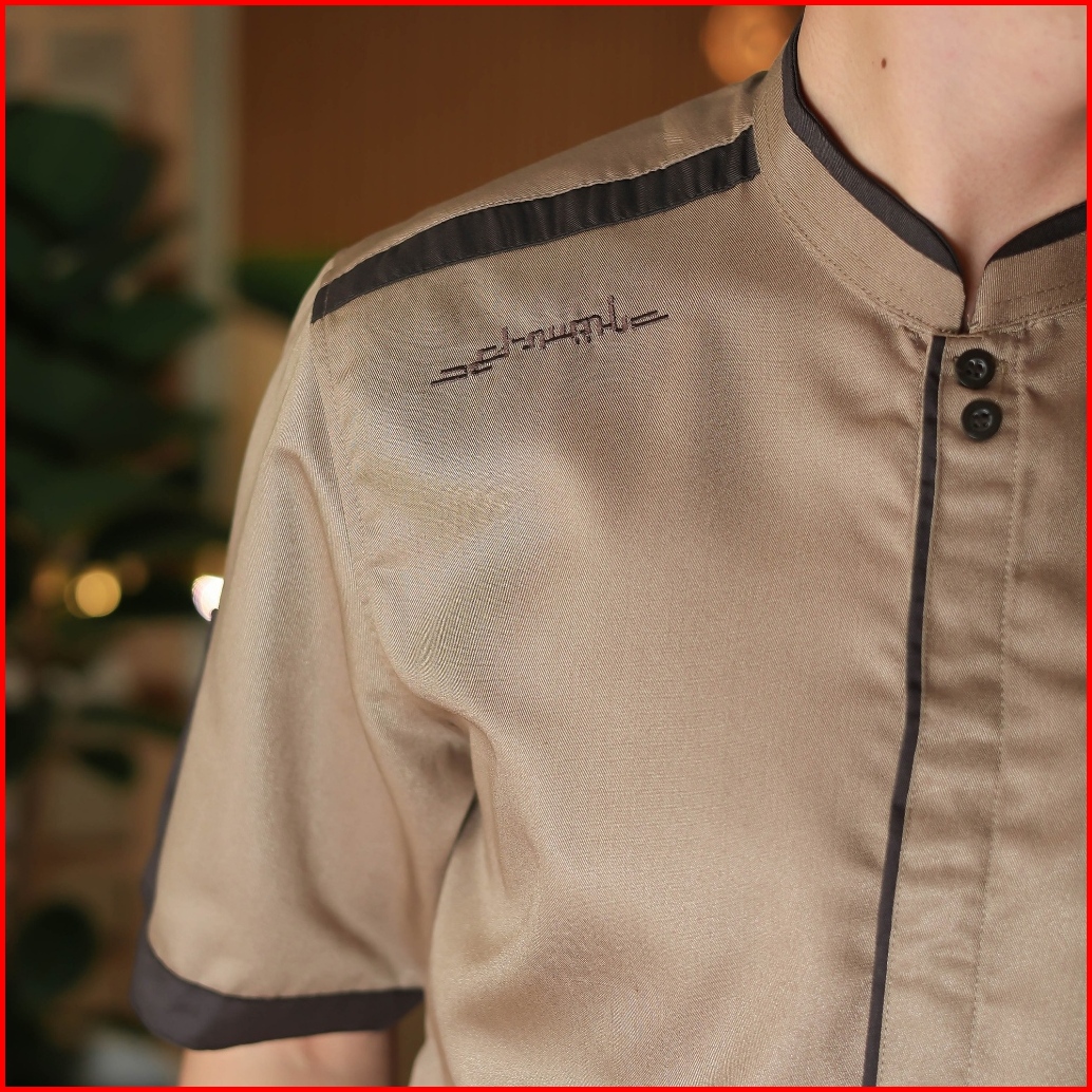 Baju Koko Pria Elrumi Lengan Pendek Motif Yisunsin Warna Cokelat