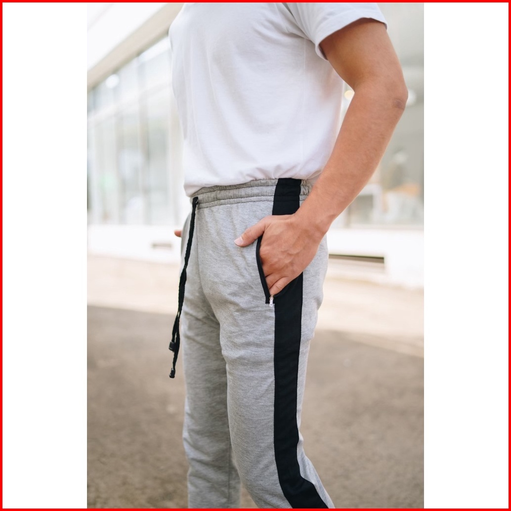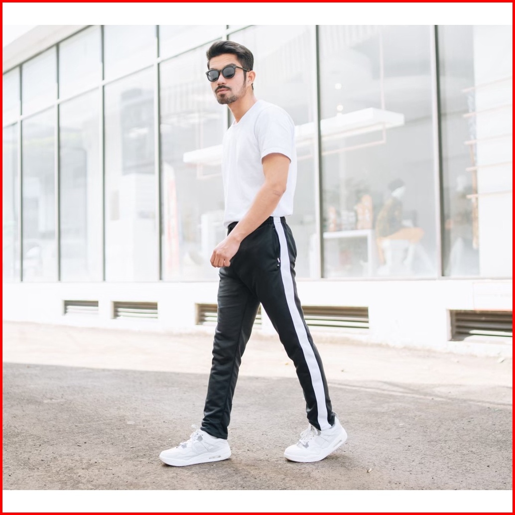 Monstice - Celana Training Olahraga Trackpans Hitam List Putih Pria Wanita Celana Jogging Olahraga Panjang