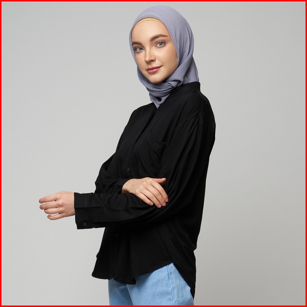 Monellina Shakila Kemeja Oversize Wanita Lengan Panjang Polos