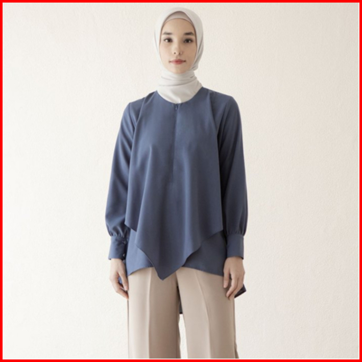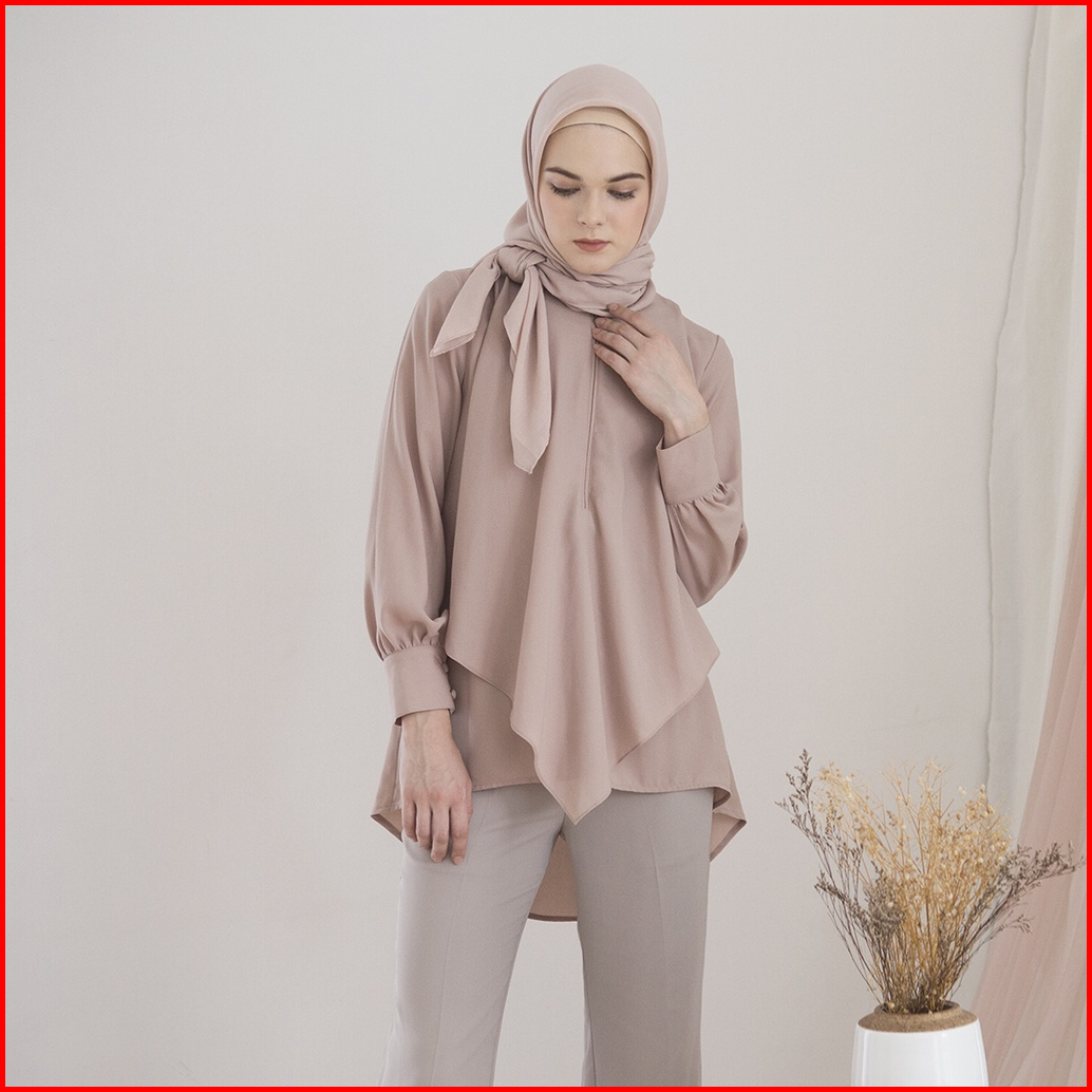 Dian By Aska Label - Atasan Kantor Basic Lengan Panjang Dan Busui Friendly Warna Putih Berfuring Burgundy Sand Mint Mauv