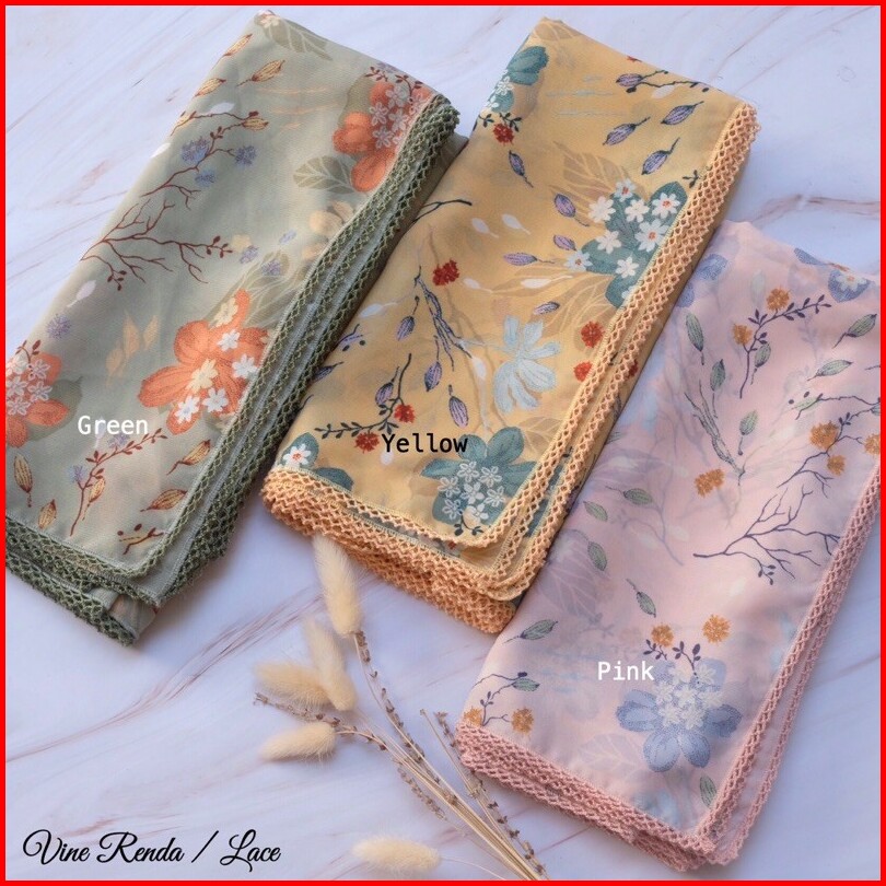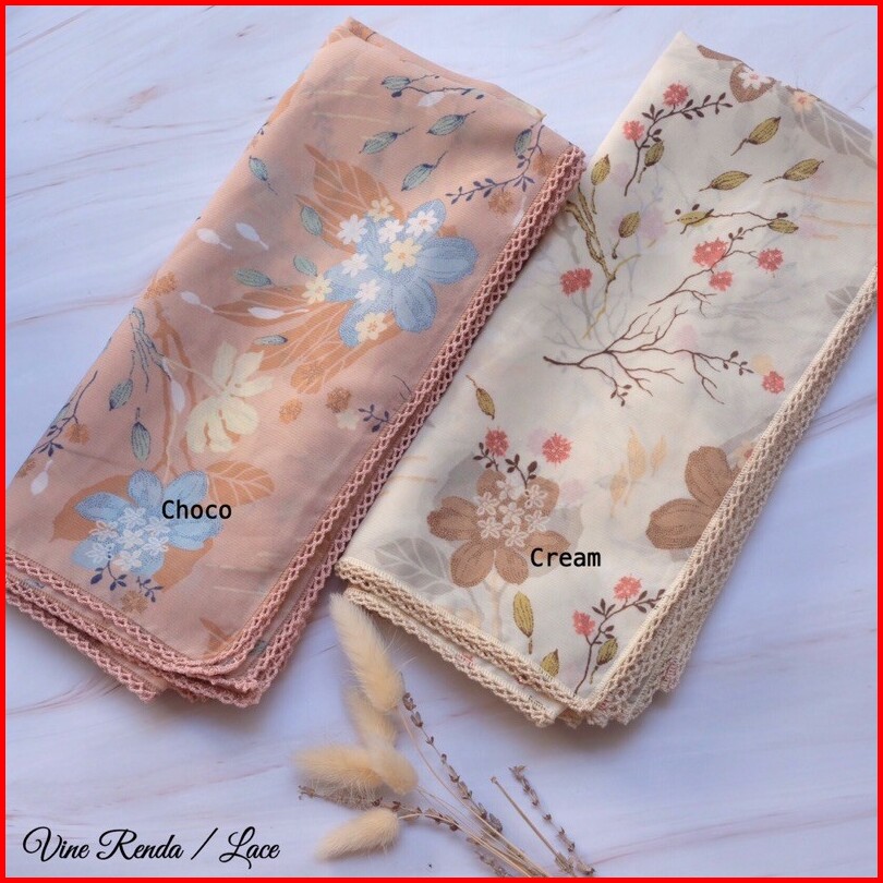 Pinggiran Renda Hijab Aurora Hijab Motif Segiempat Ukuran 115x115 Cm - Kerudung Motif - Chiffon Vine - 061 Picot Best Se