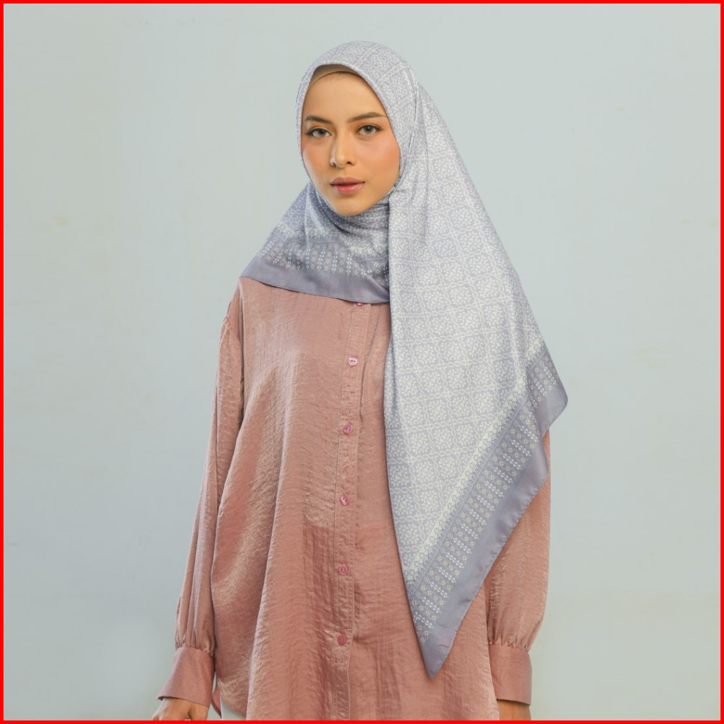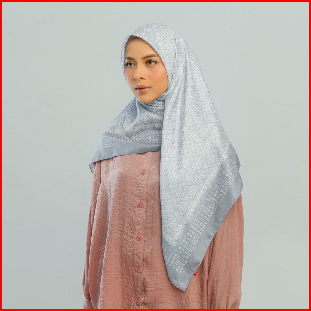 Zoya Qistina Scarf - Kerudung Hijab Segiempat Motif With Pouch - Bahan Voal - Ukuran 110x110