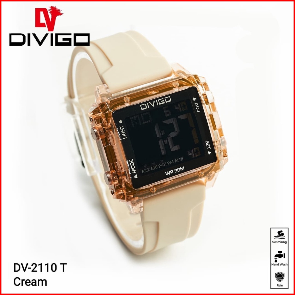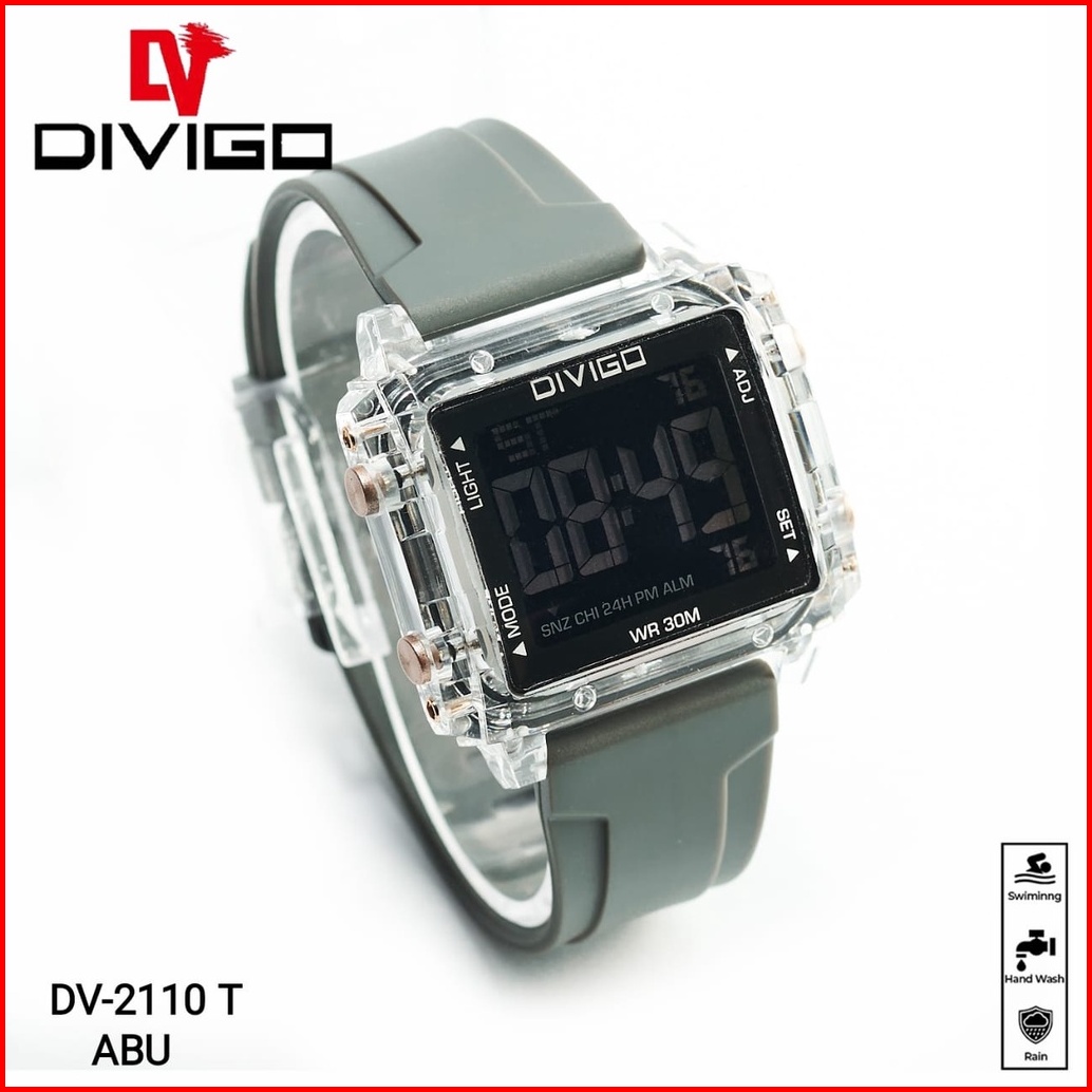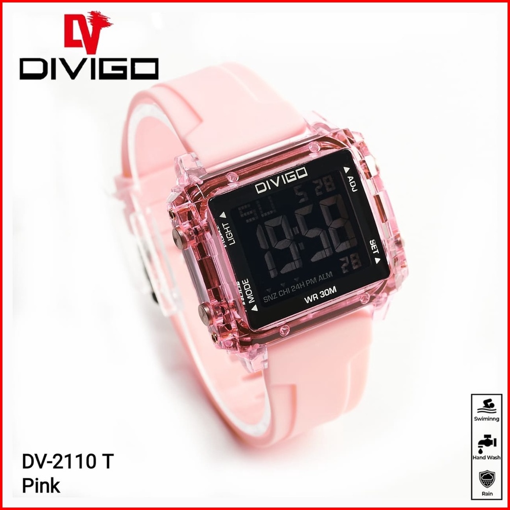 Jam Tangan Wanita Pria Divigo Digital Kotak Transparan Water Resist