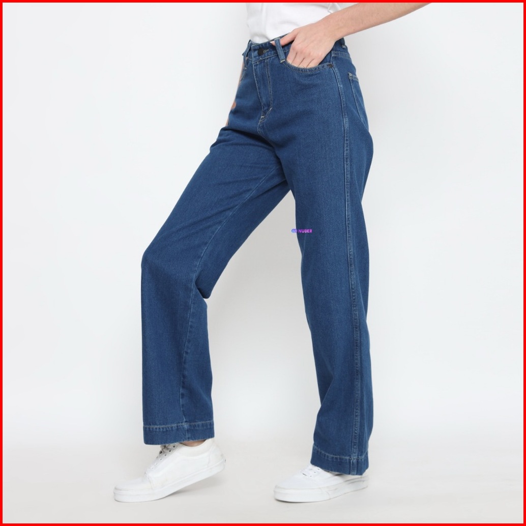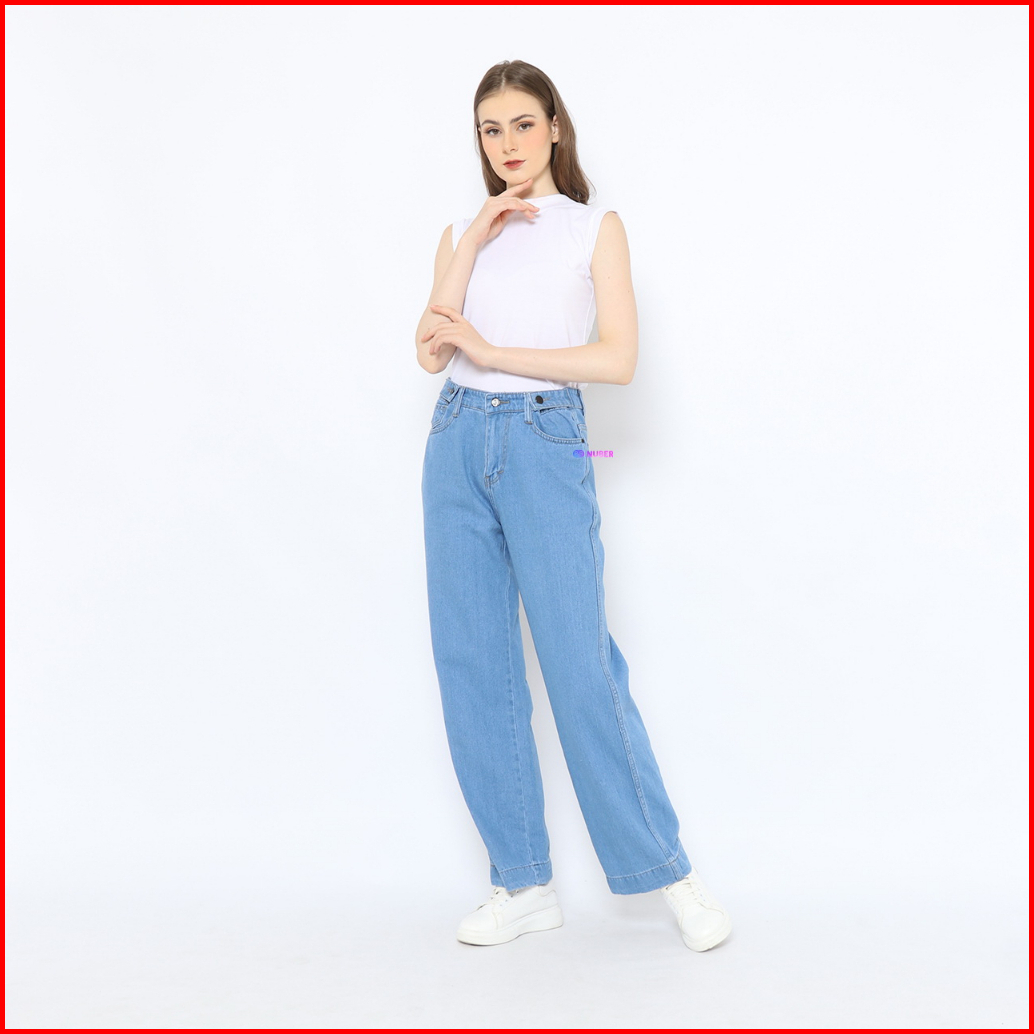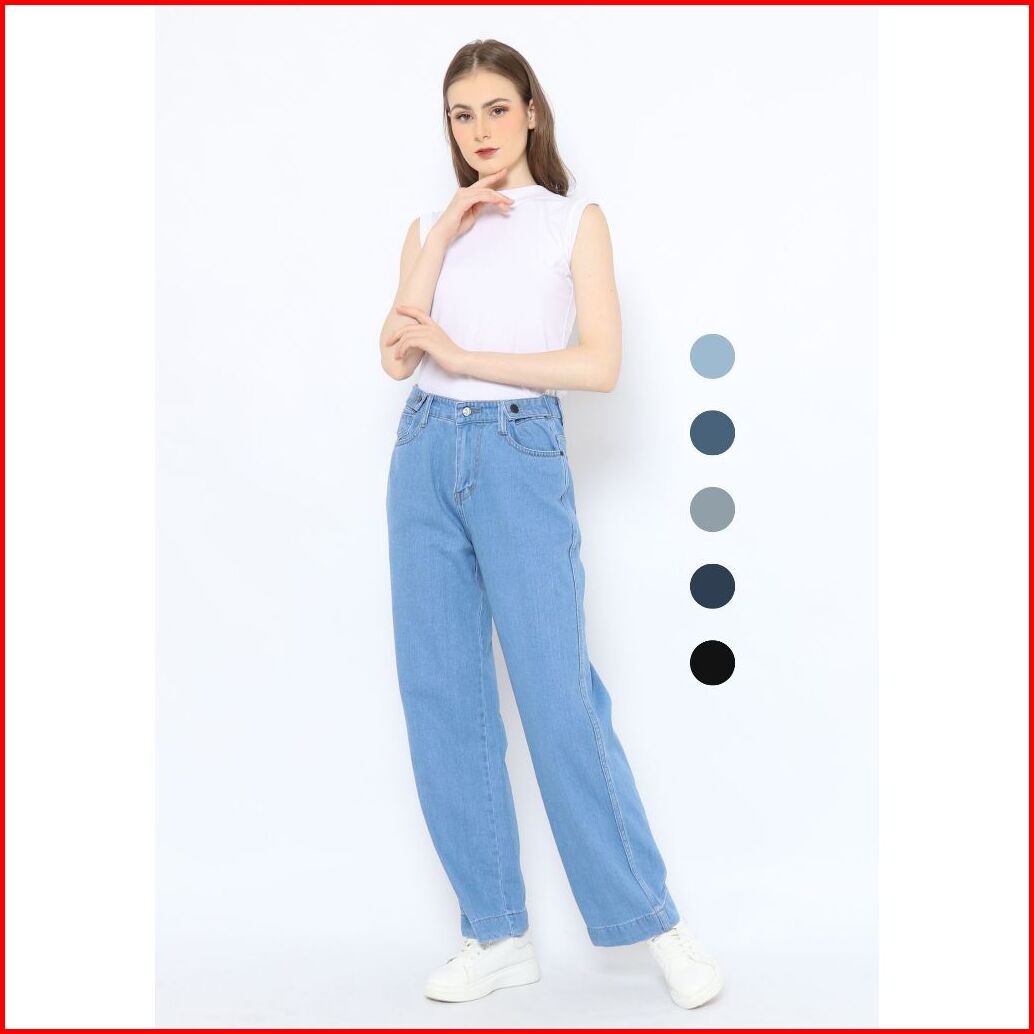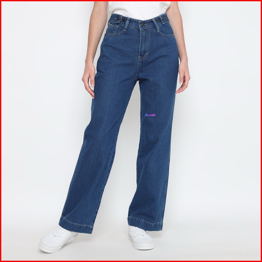 Nuber Baggy Jeans Wanita High Waist Blue Hitam Navy Putih Kunal All