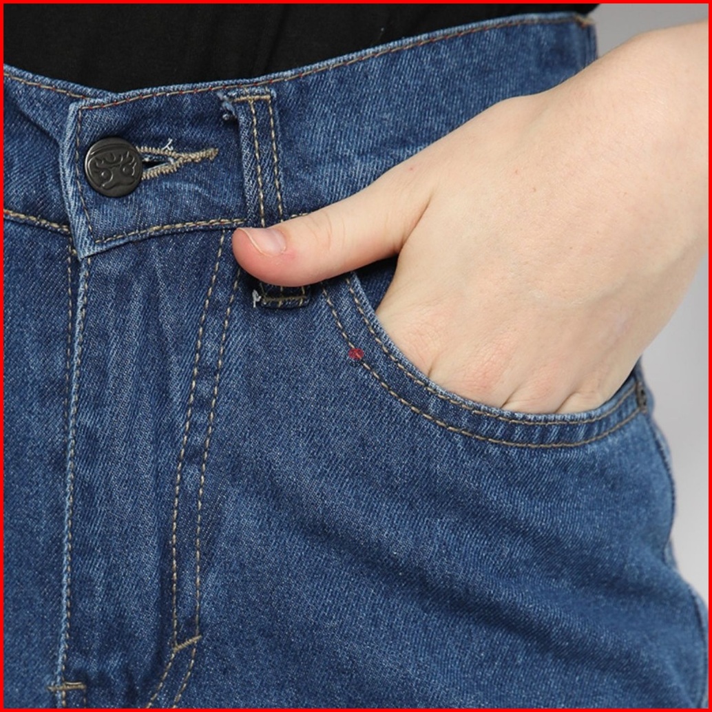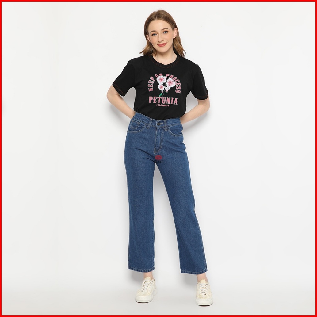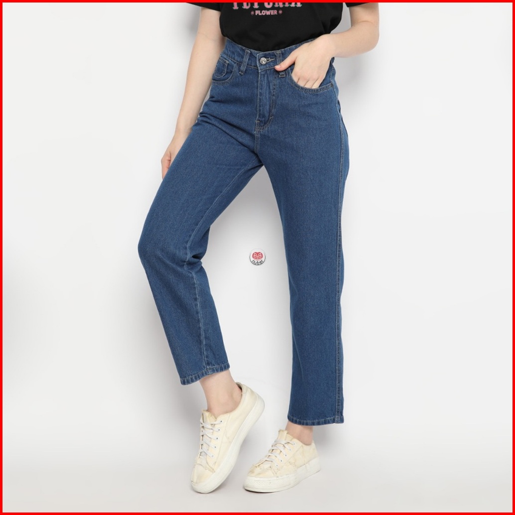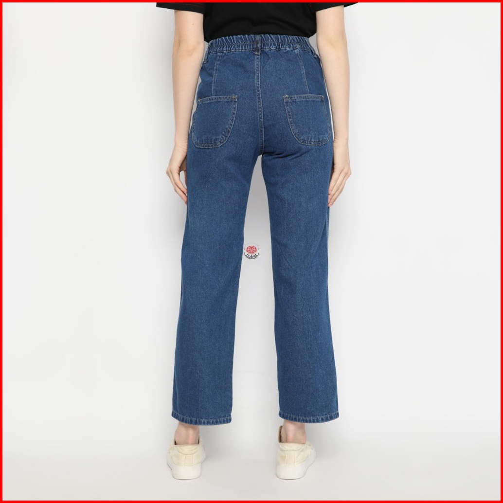 Nuber Baggy Pinggang Karet Highwaist Celana Panjang Jeans Scarlet Hitam Biru