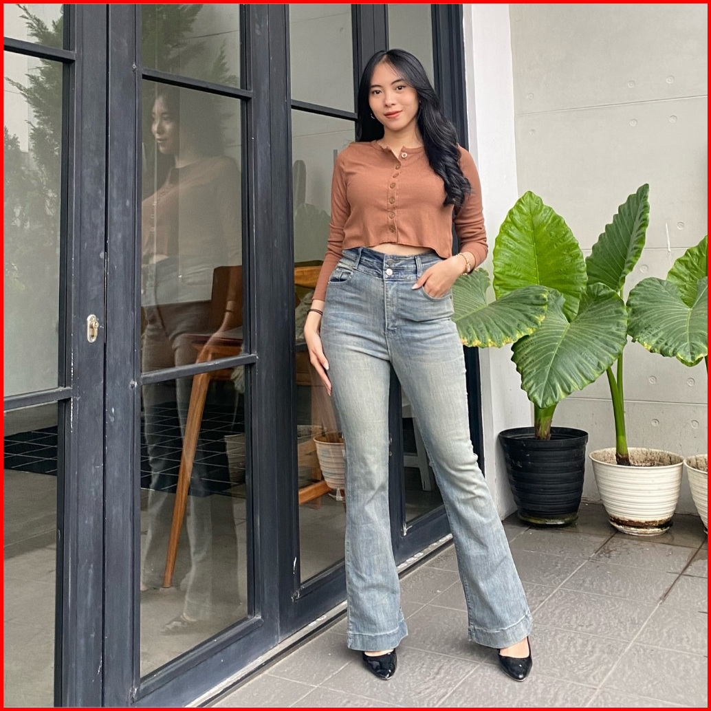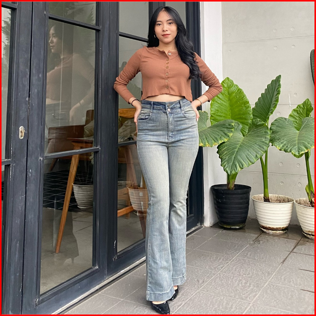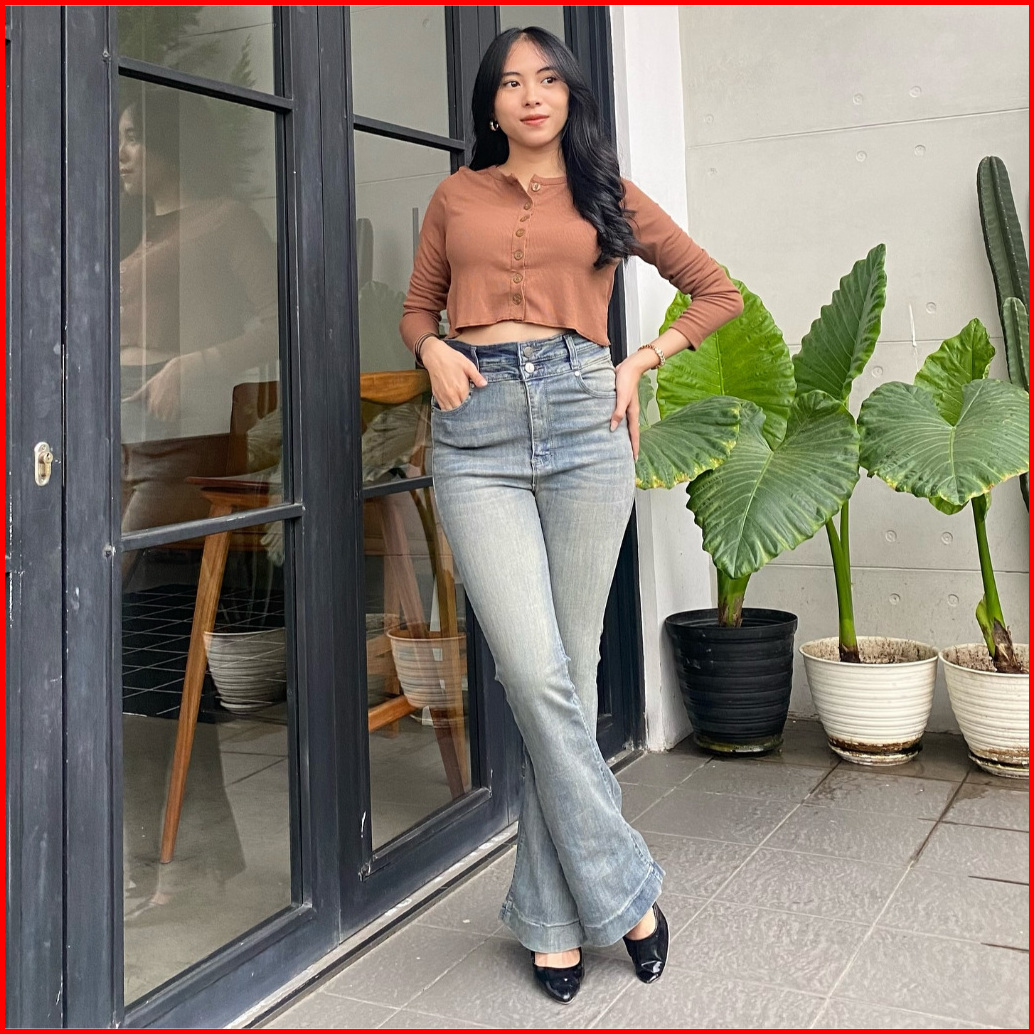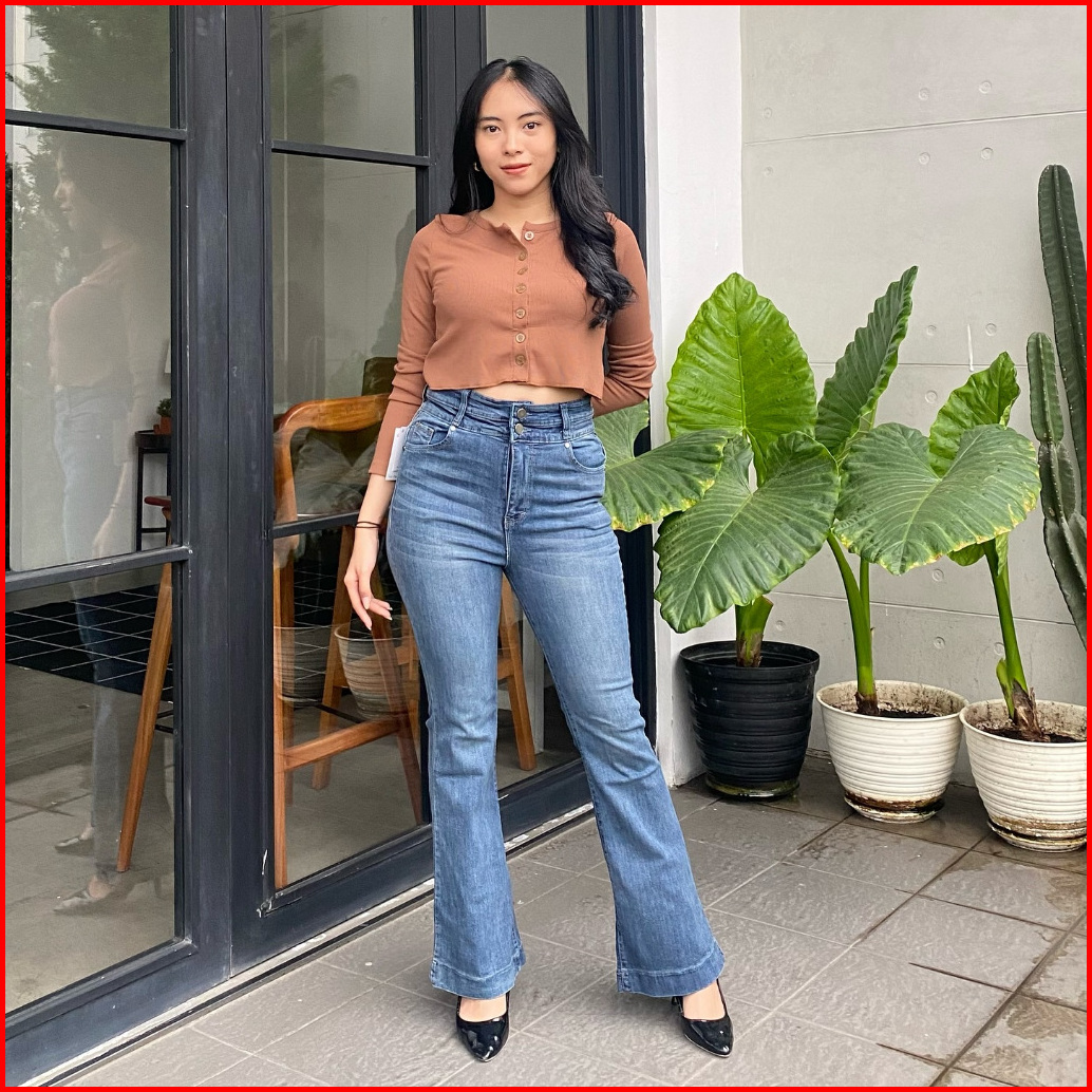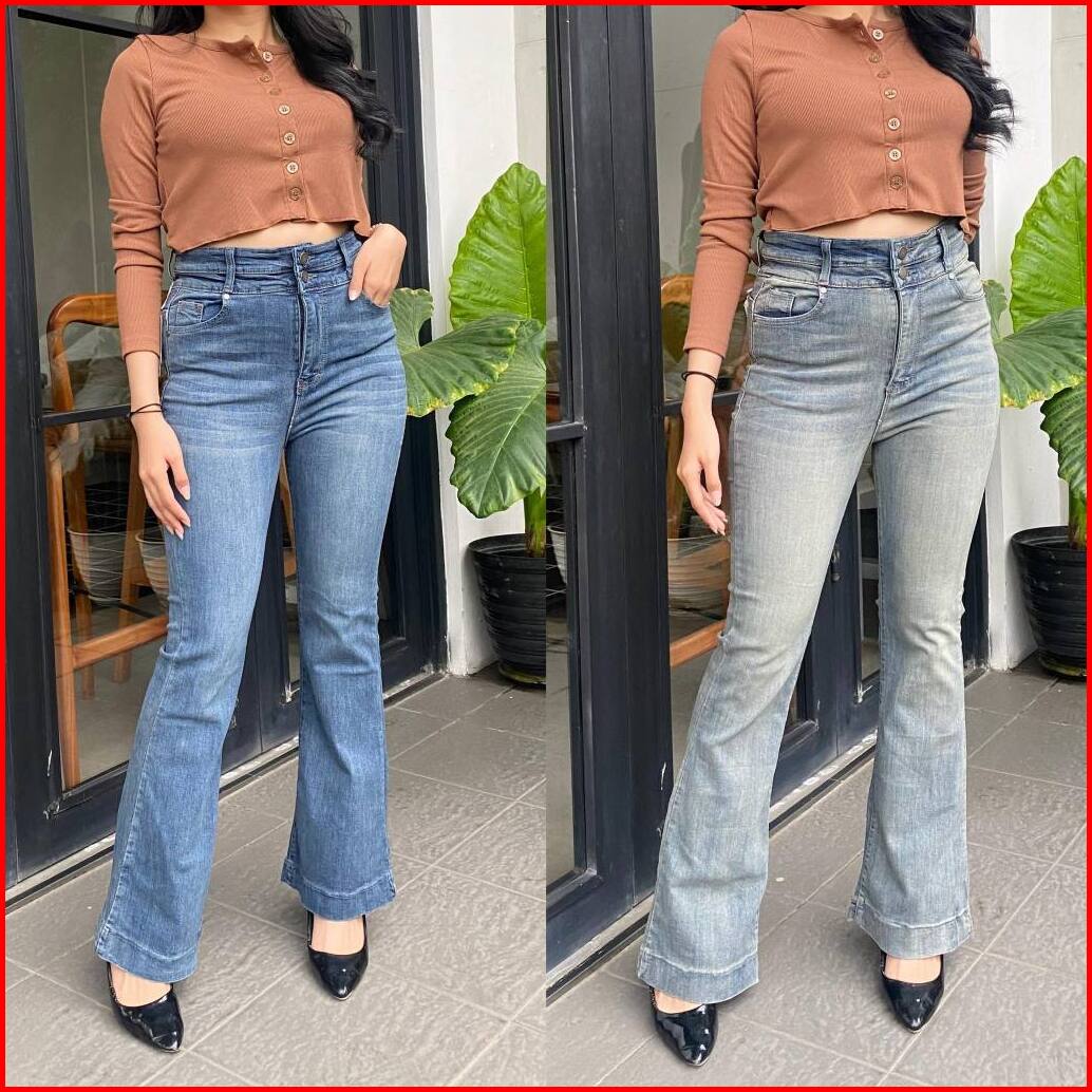 Best Seller Highwaist Cutbray Emily Series Kancing 2 Celana Jeans Cutbray Wanita Premium Quality