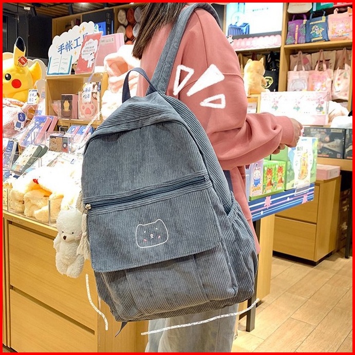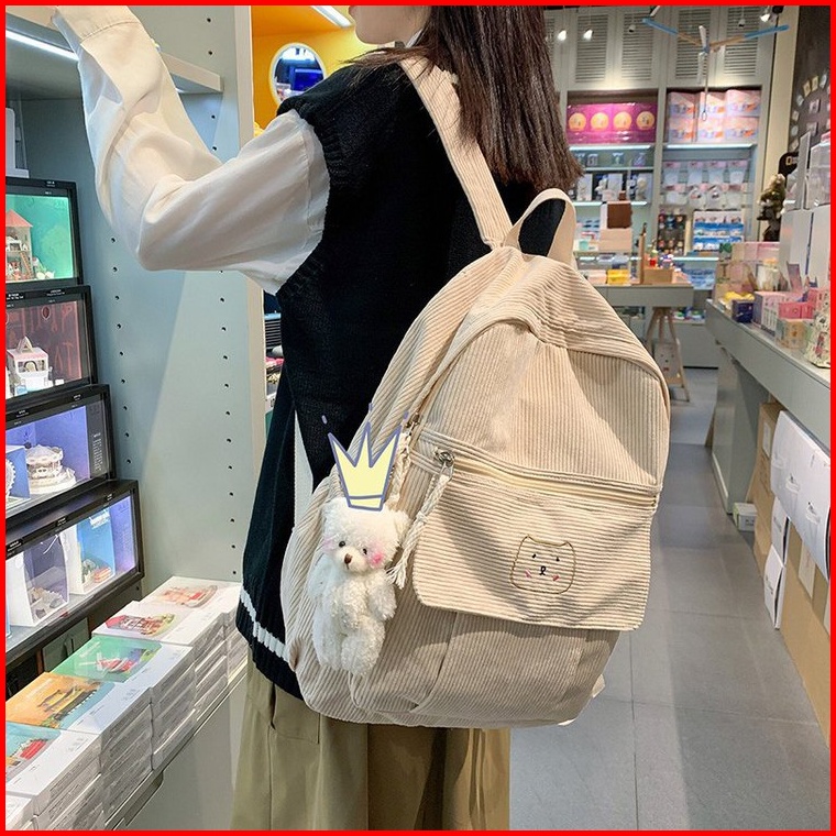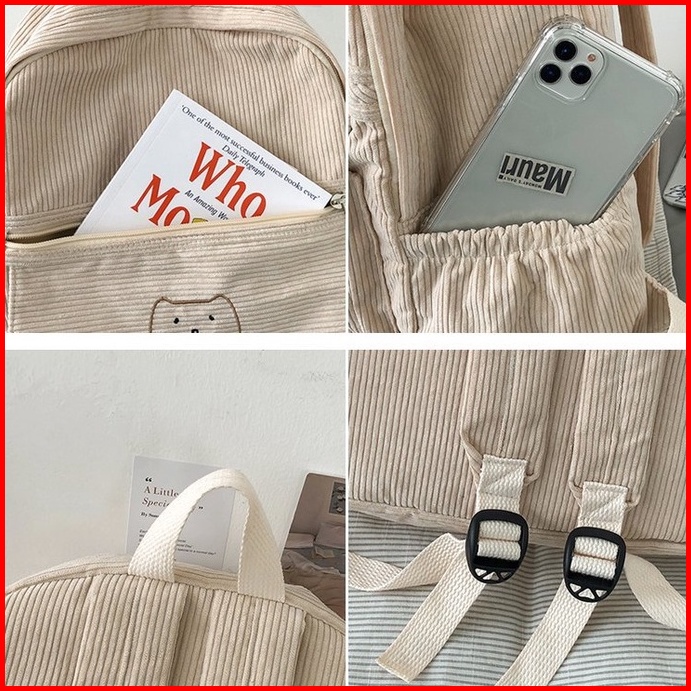 Mismi Deva Bag Tas Ransel Wanita Korduroi Cute Korean School Backpack Perempuan Trendy - 20d