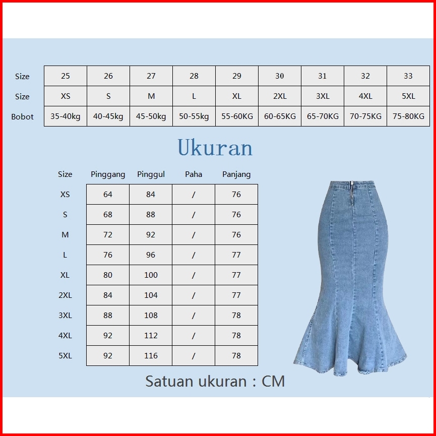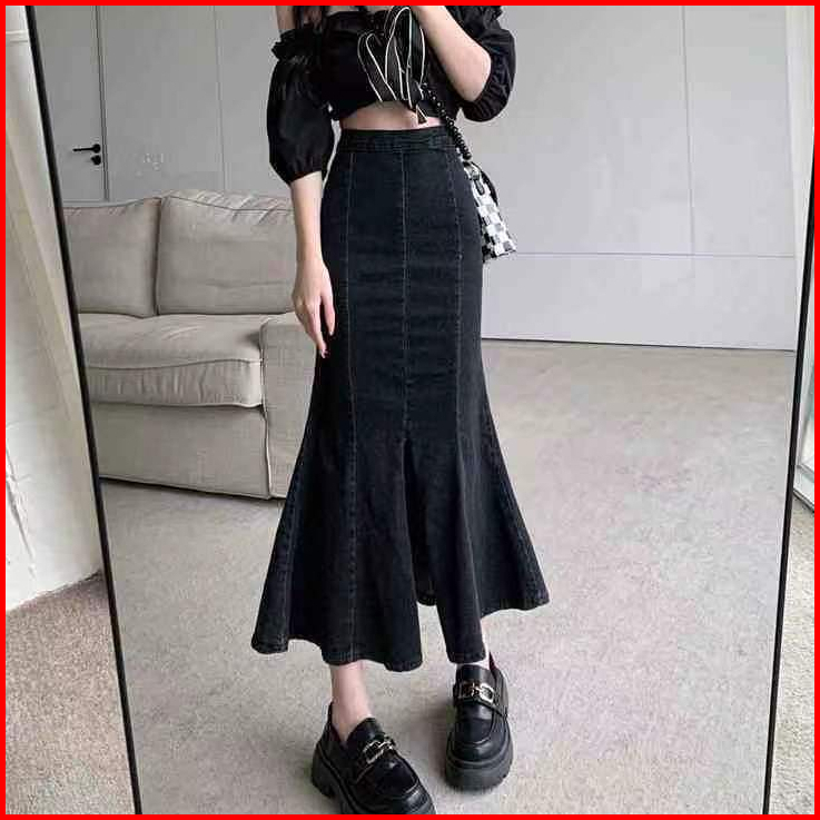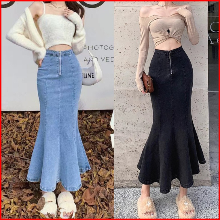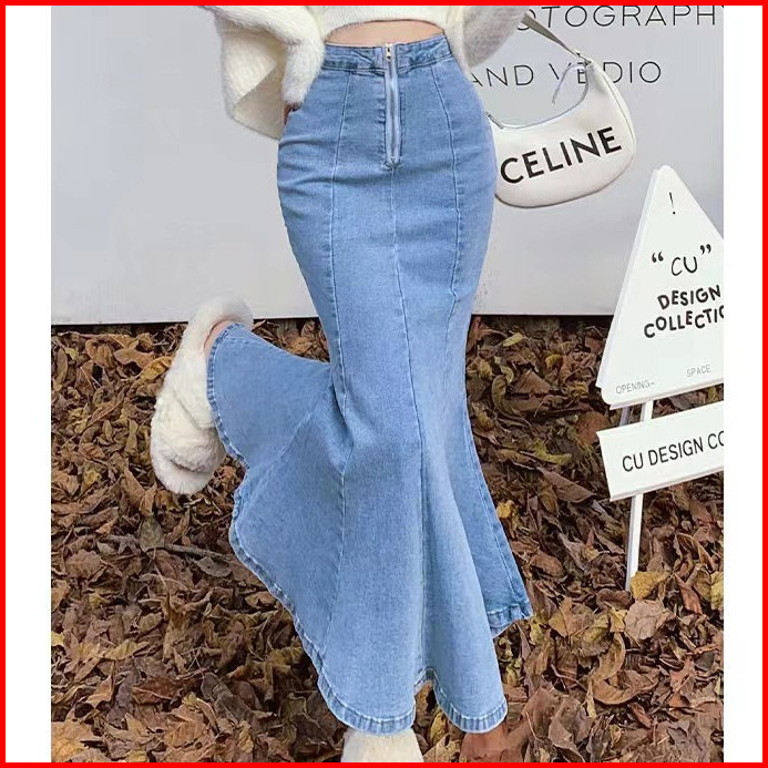 Meissi.idrok Jeans Duyung Bigsize Jumbo Xs-6xl Rok Jeans Wanita Skirt Jeans Highwaist Fishtaile Rok Jeans Panjang 7 8 Ro