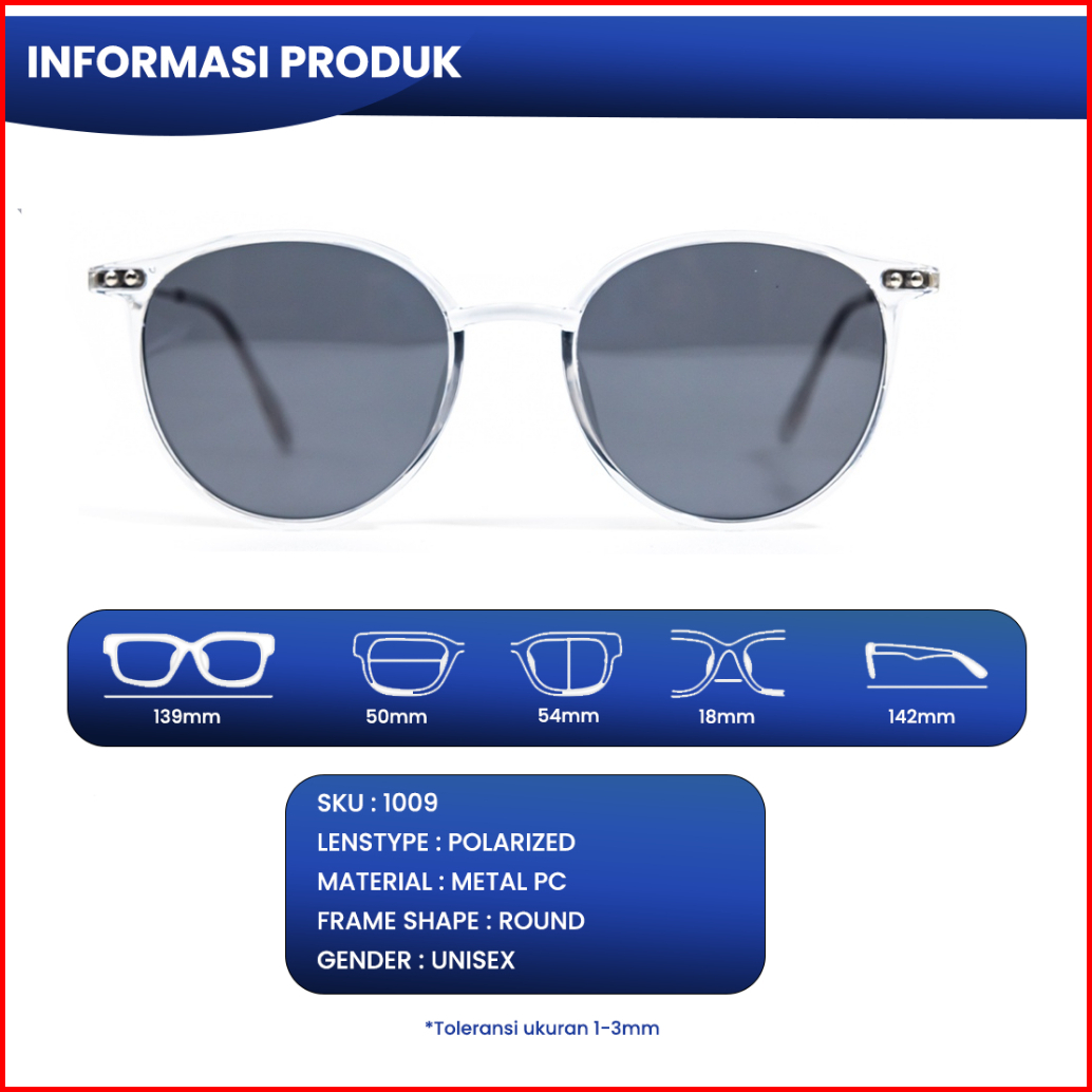 Iooi Eyewear - Kacamata Hitam Bulat Sunglasses Fashion Bahan Metal Pc Pria Wanita 1009